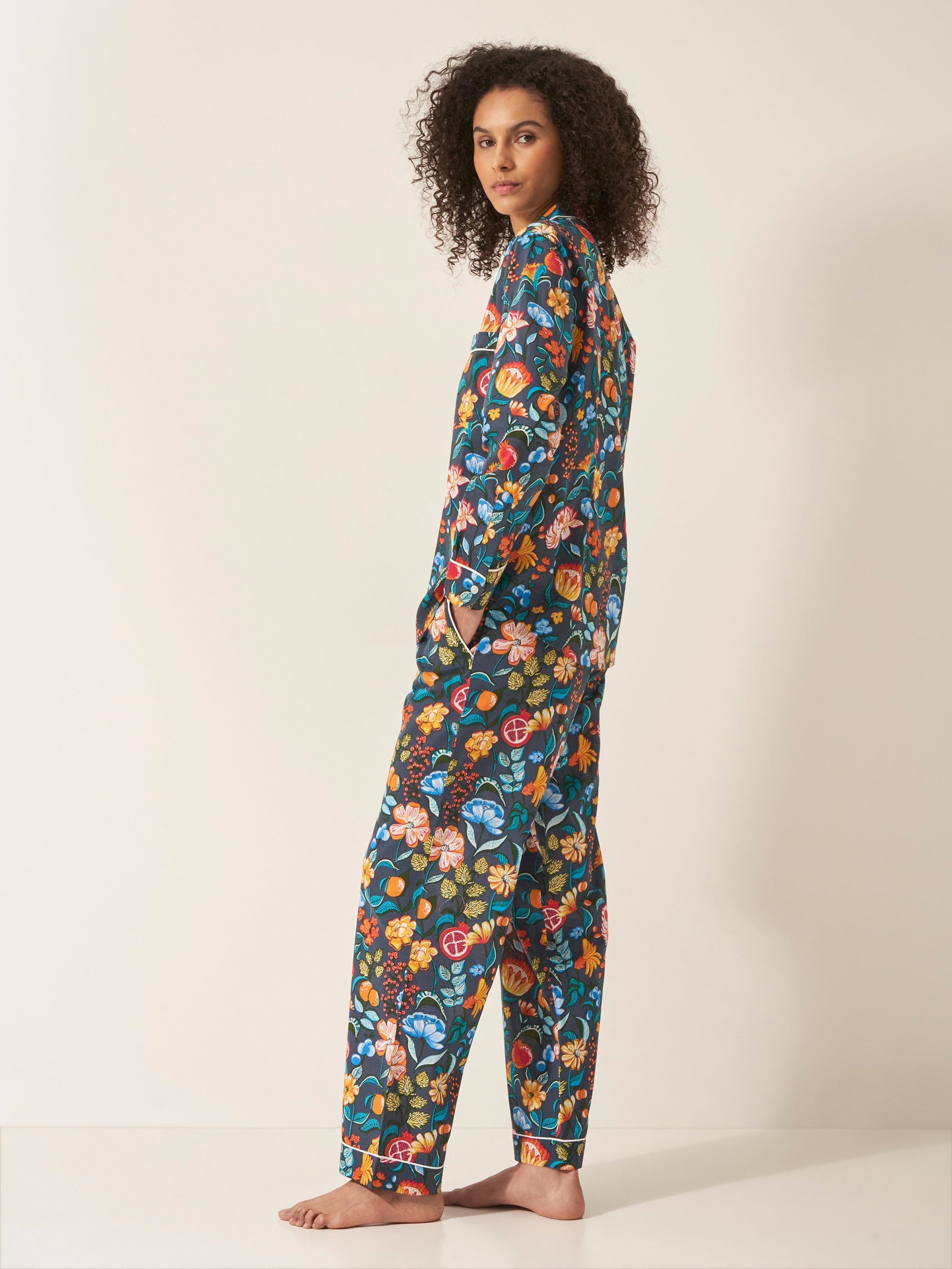 Florals on Navy Women’s Pyjama Trouser Set | Organic Cotton Long Sleeve PJs | Elegant Floral Print Sleepwear Gift for Her