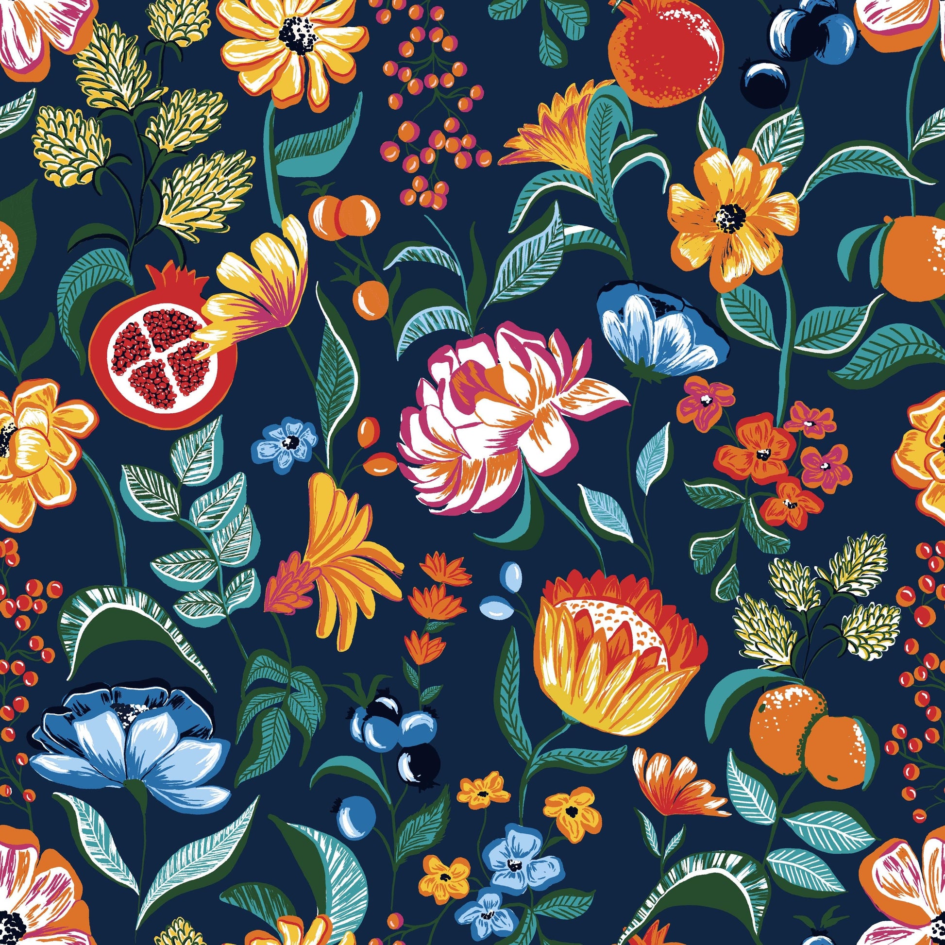 Florals on Navy Women’s Pyjama Trouser Set | Organic Cotton Short Sleeve PJs | Soft Floral Print Sleepwear Gift for Her