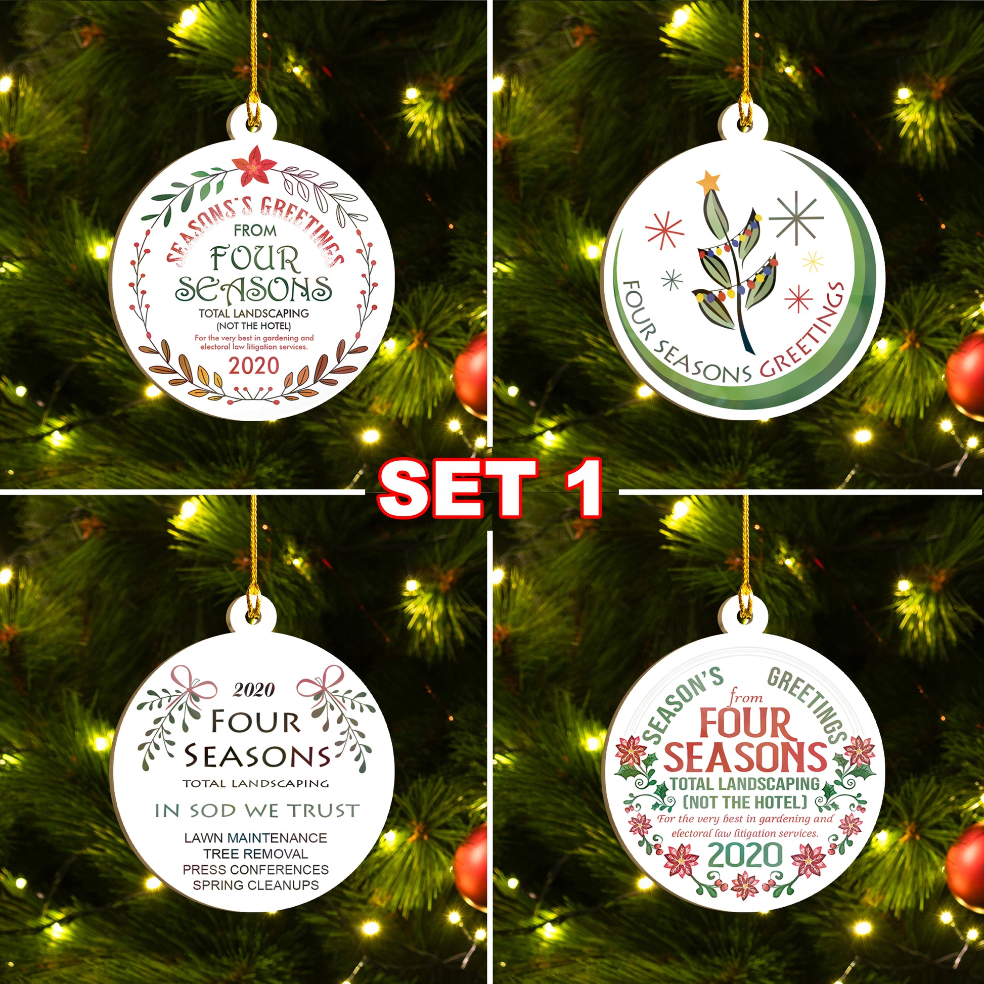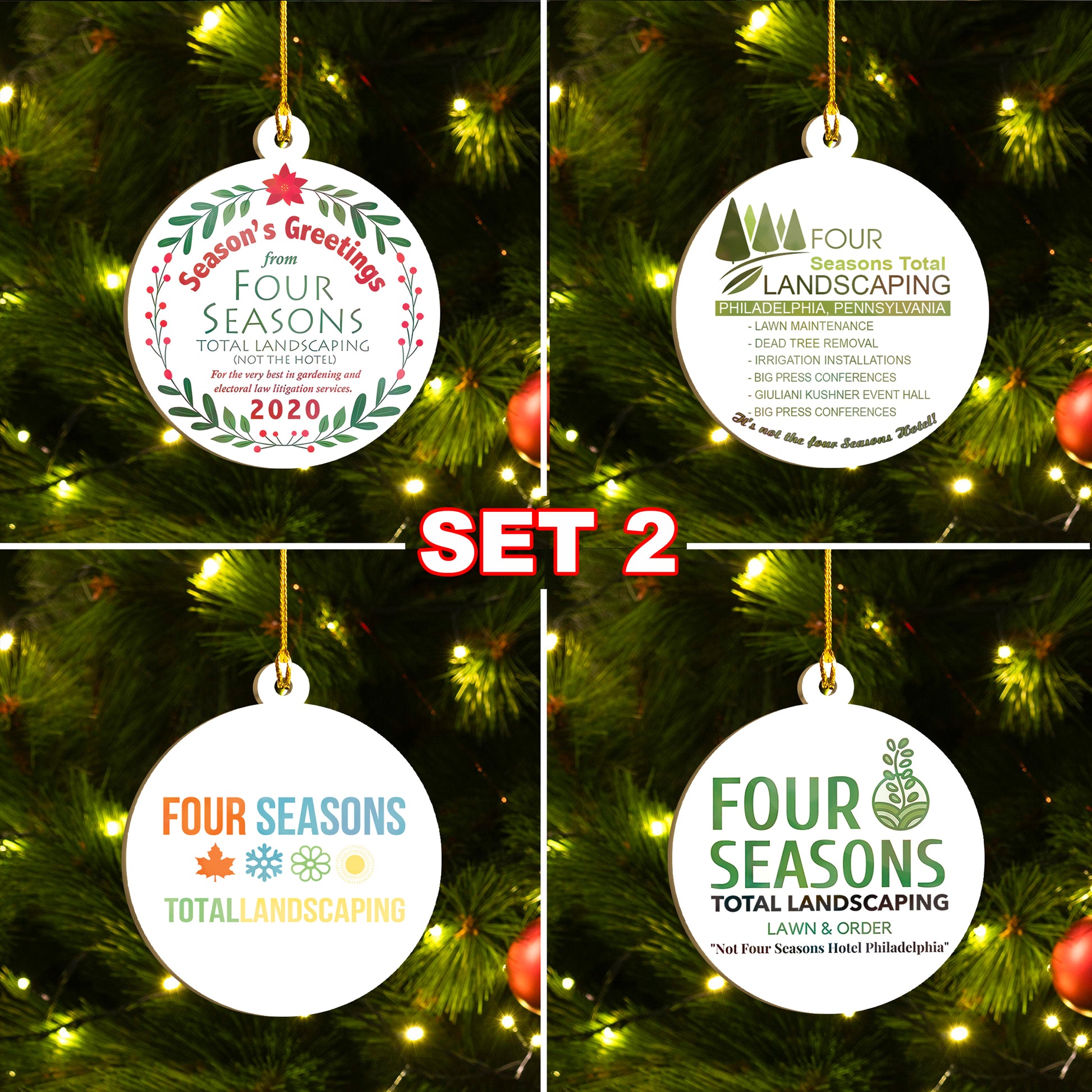 Four Seasons Total Landscaping Ornaments Set, Funny Christmas Ornaments Family Gift Idea