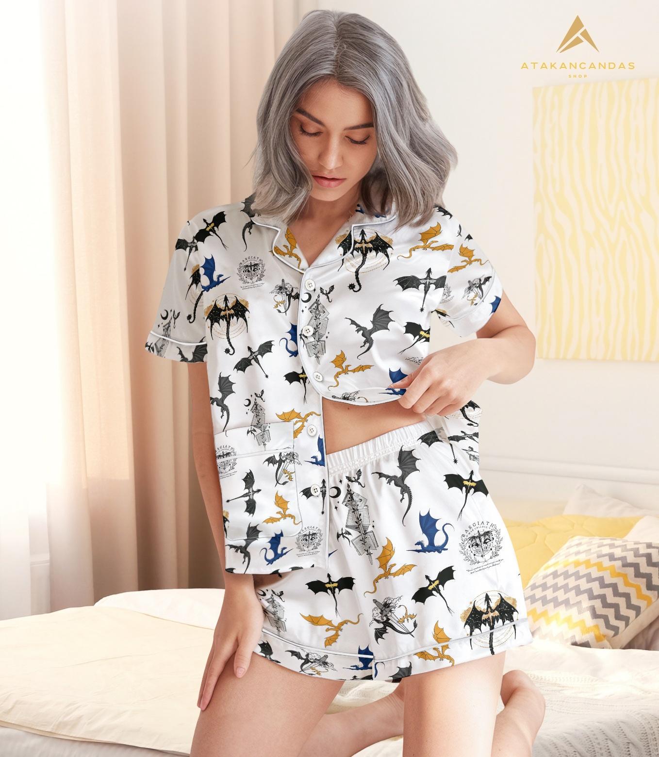 Fourth Wing Short Satin Pajamas, Dragon Fly Or Die Matching Pajamas, Dragon Bookish Short Sleeve Pajamas, Dragon Bride Pajamas Women