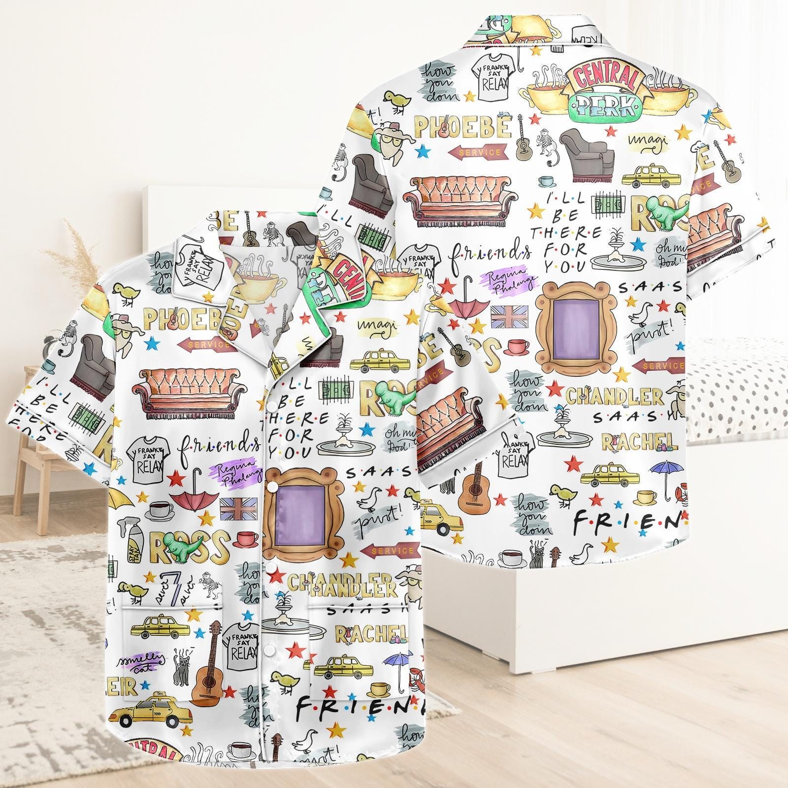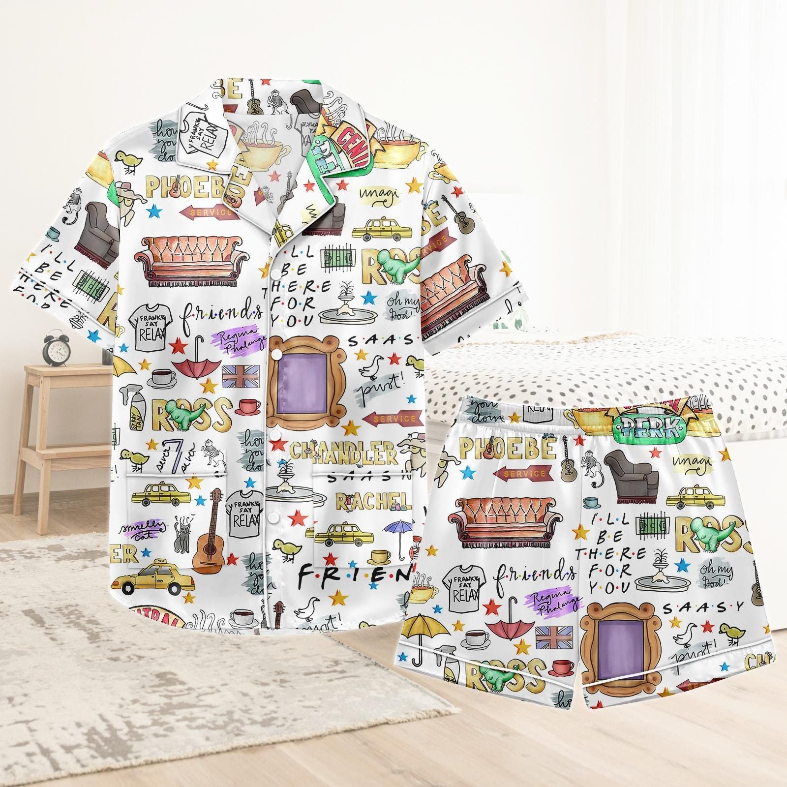 Friends Series Short Satin Pajamas, Central Perk Pajamas Set Women, Pastel Silk Pajamas, Matching Pajama Shorts, 90s Sitcom Pajamas
