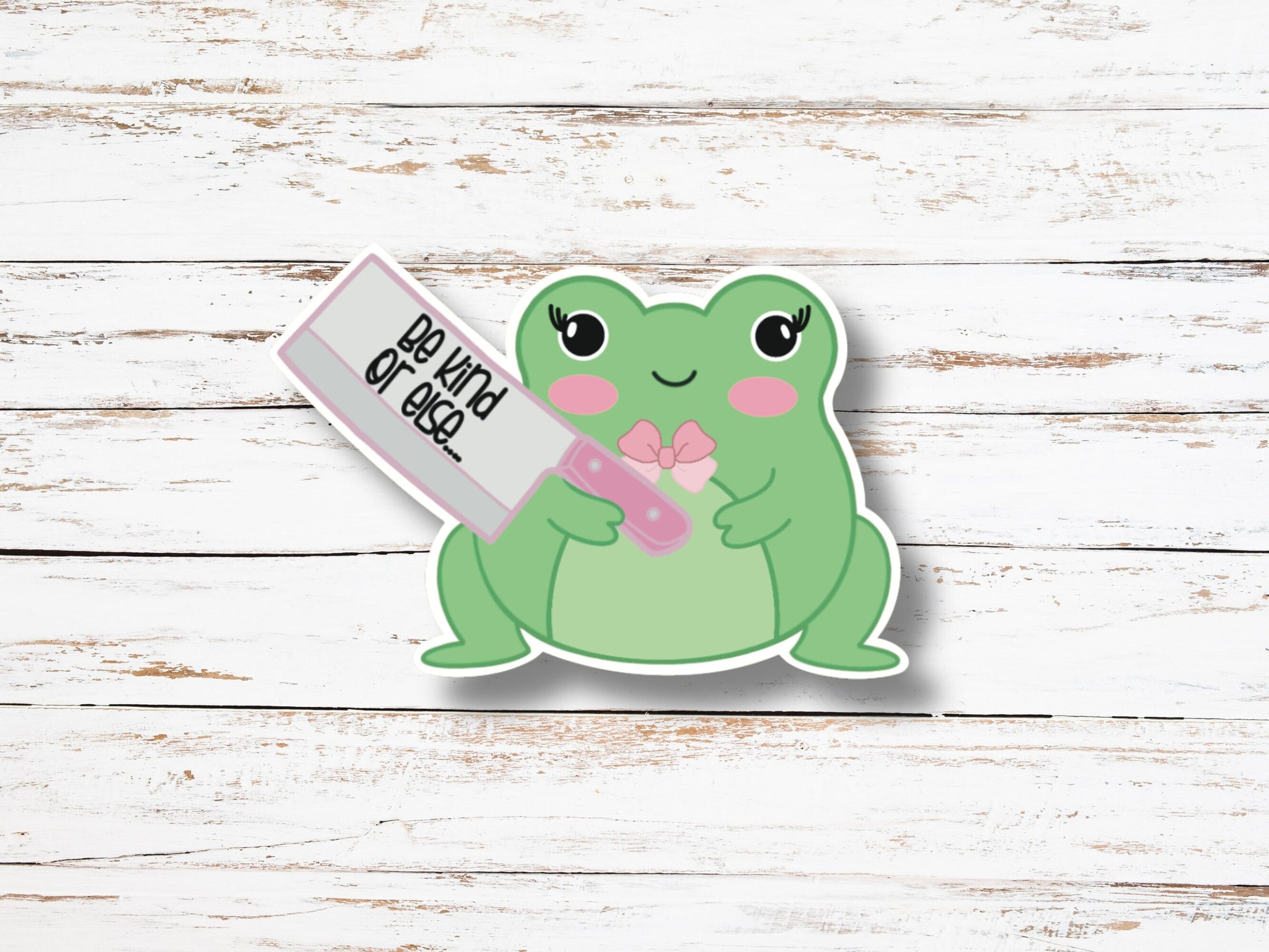 Frog with Knife Sticker- Cute Frog Vinyl Sticker, Kindle waterproof decal, Aesthetic Phone Case Sticker, Laptop Decal, Funny Frog Sticker