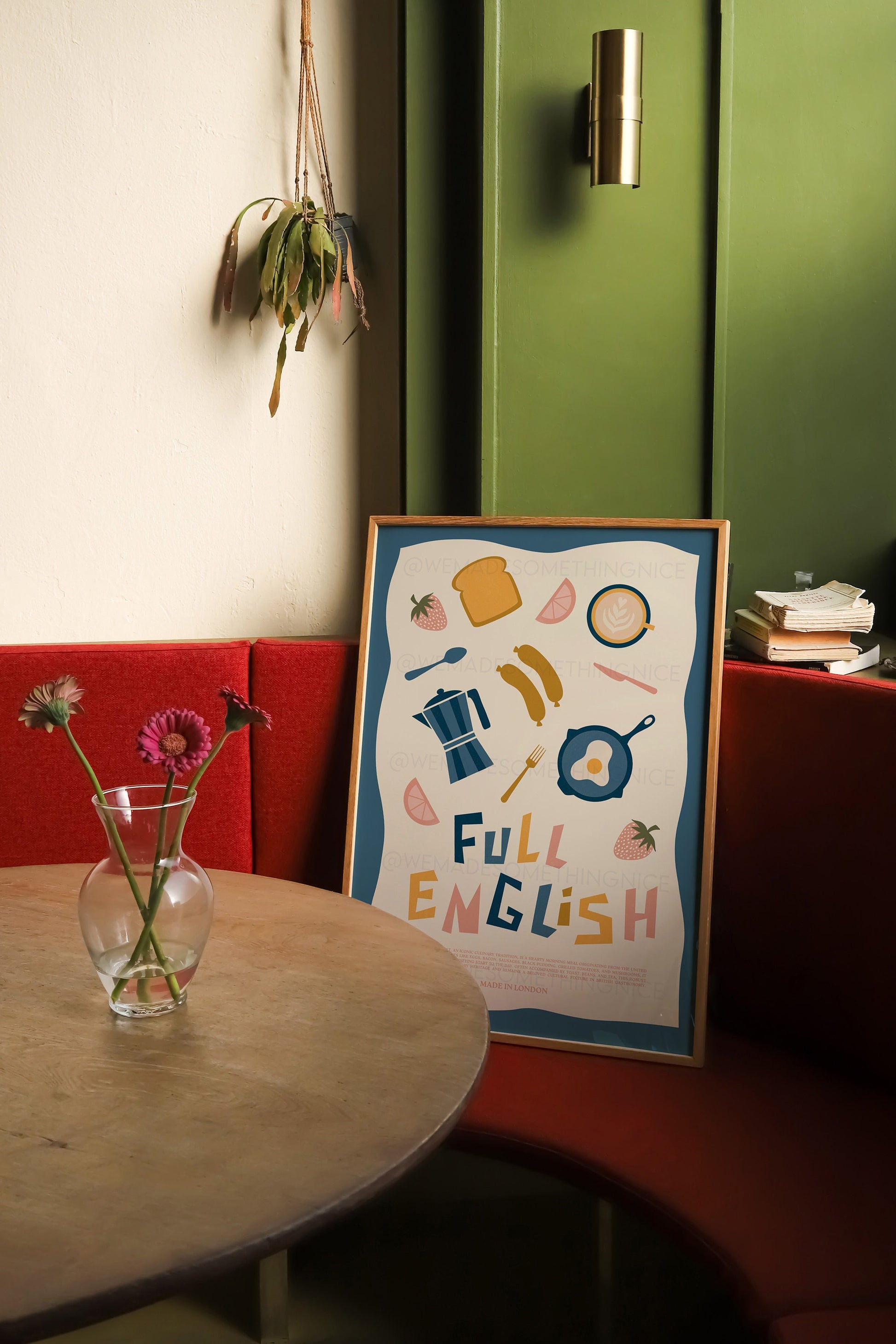 Full English Breakfast Poster, Kitchen Art, Kitchen Poster, Kitchen Print, Trendy Wall Art, Retro Print, Coffee Print