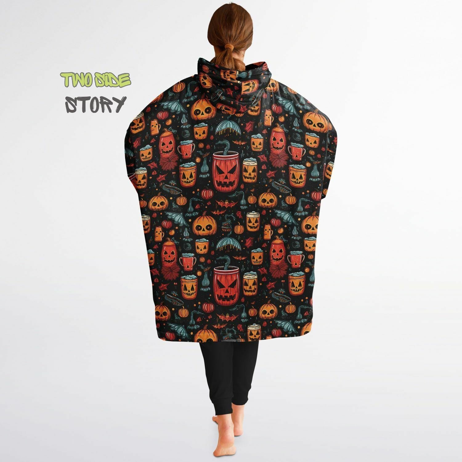 Fun Halloween Print Snug Hoodie,Printed Hooded Blanket,Blanket Sleeves,Lounge Wear,Unique,Novelty Birthday Christmas Gifts,Gift for Him Her
