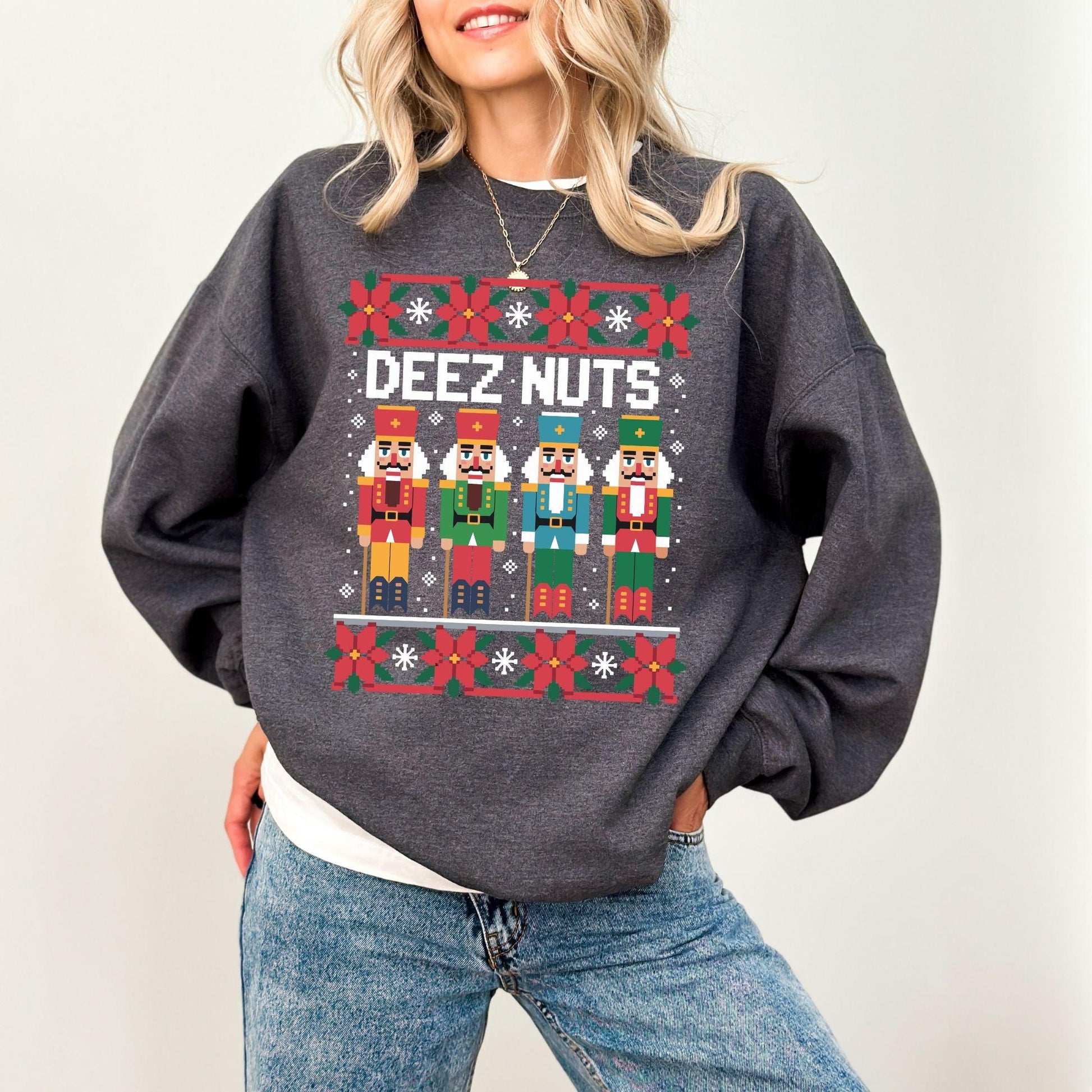Funny Deez Nuts Nutcracker Christmas Sweatshirt: Ugly Holiday