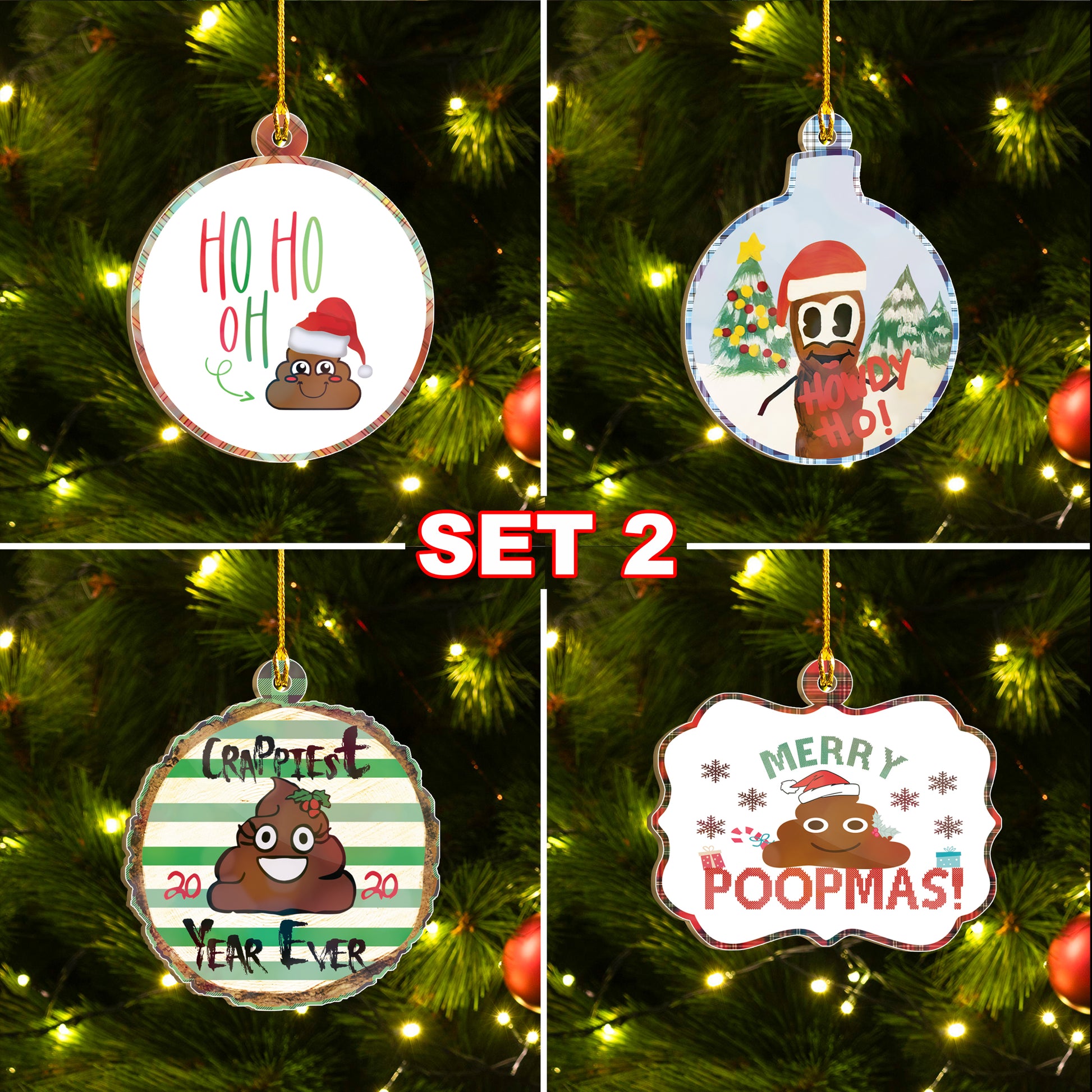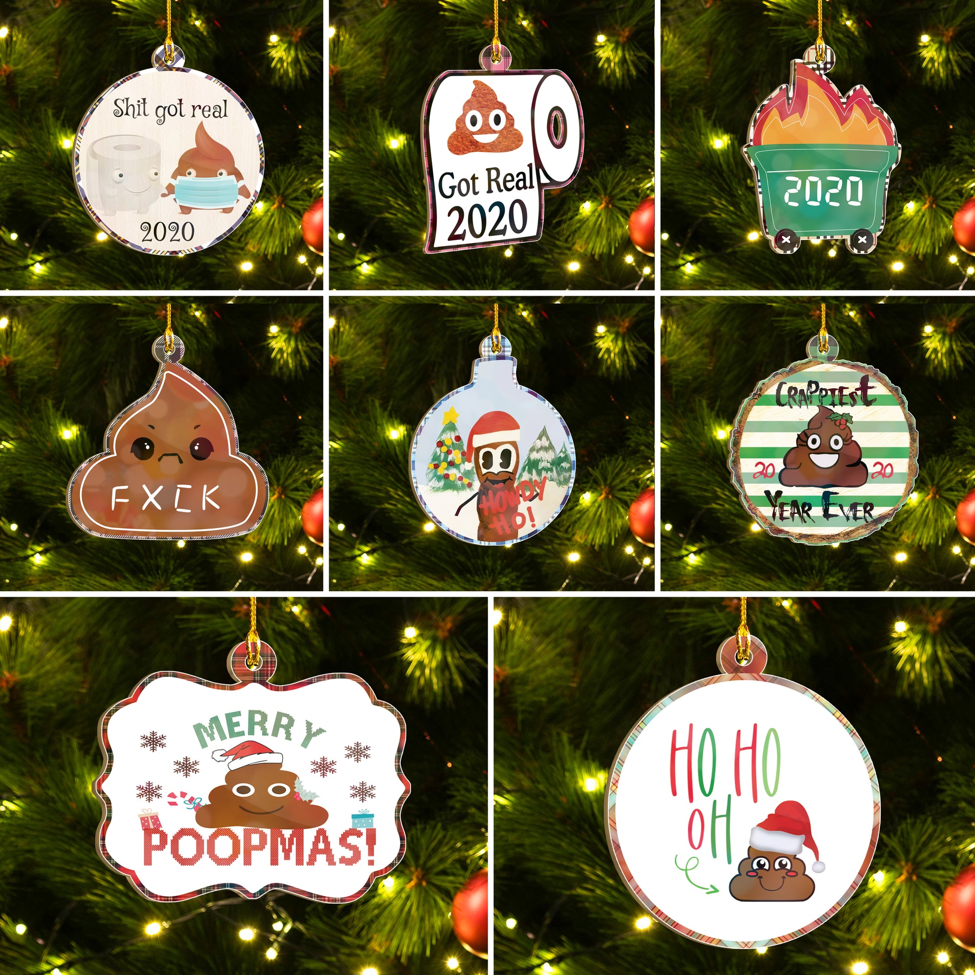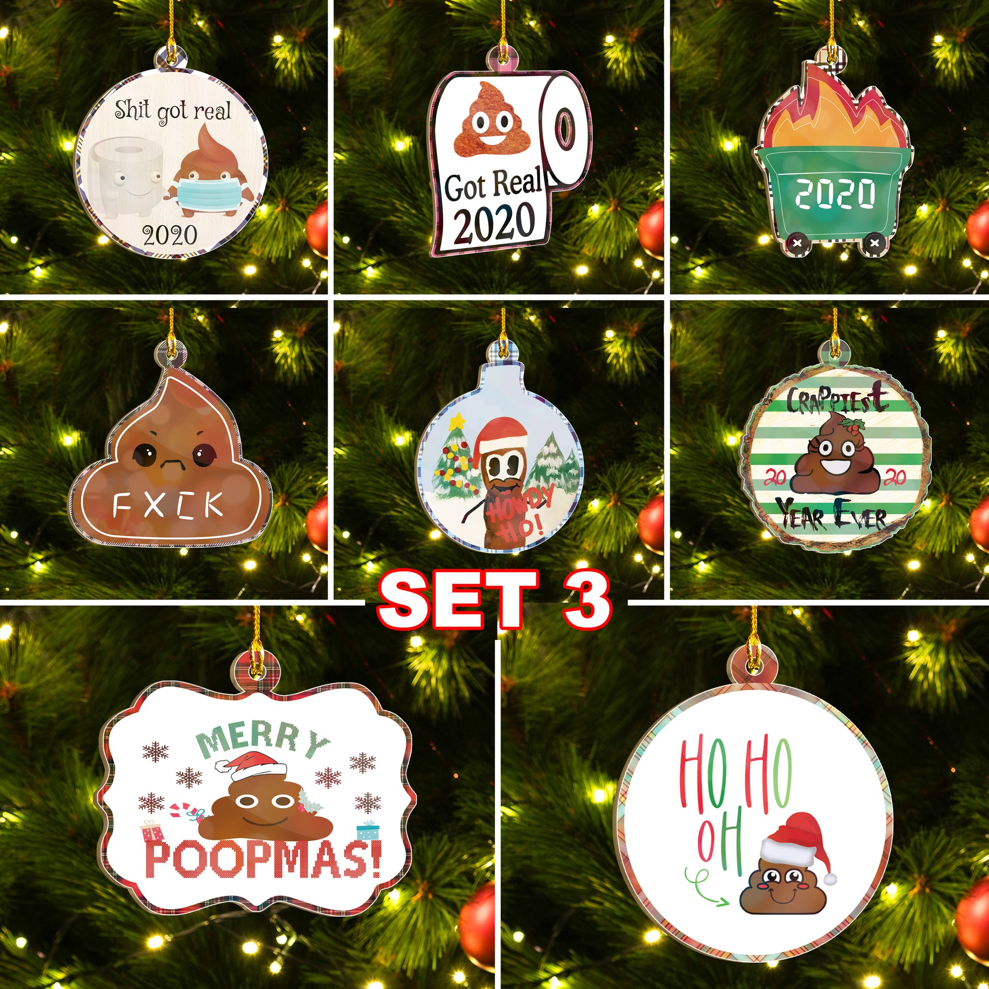 Funny Merry Poopmas Ornaments Set, 2020 Shit Got Real Ornaments Set, Christmas Ornament Family Gift Idea