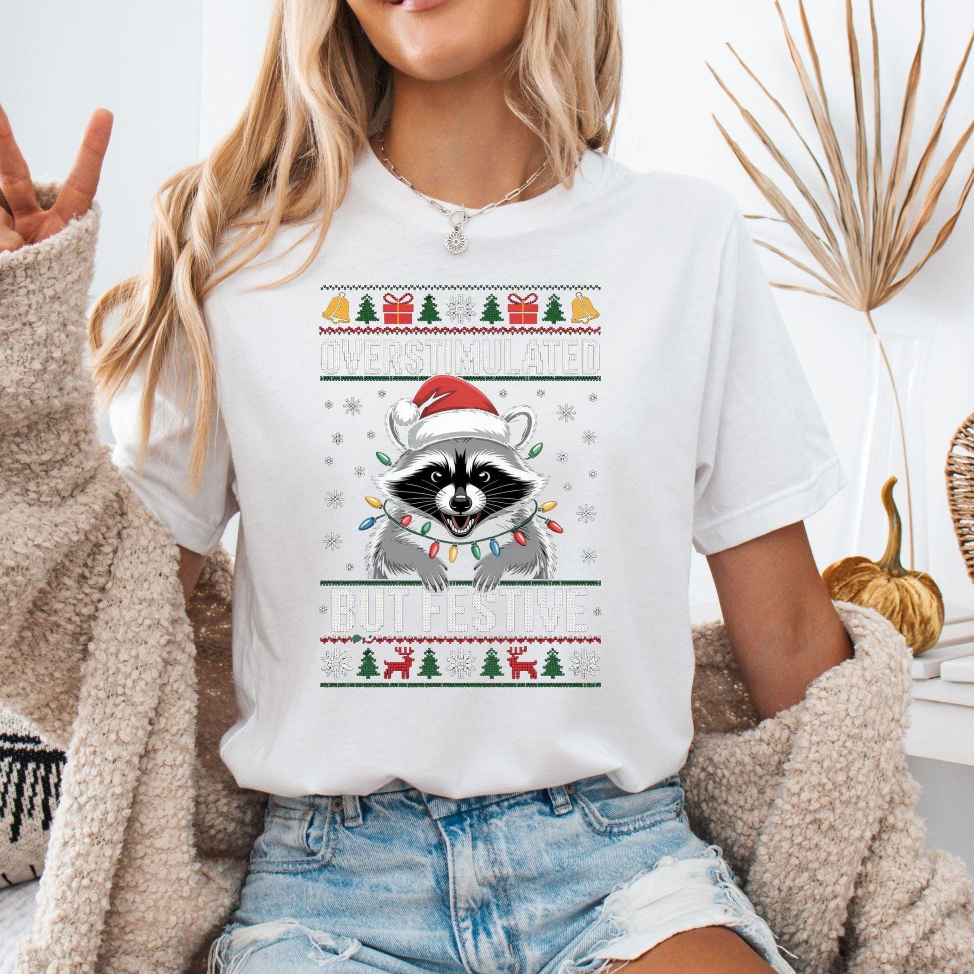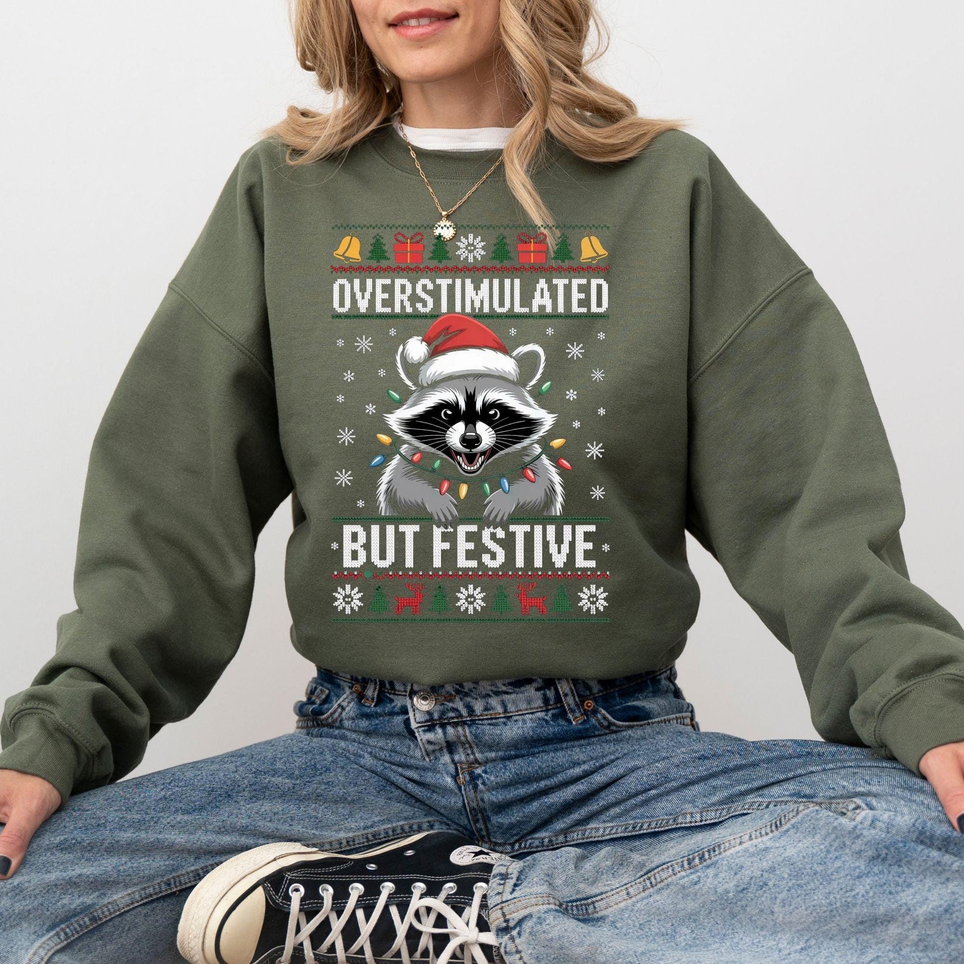 Funny Overstimulated Raccoon Christmas Sweatshirt: Ugly Holiday