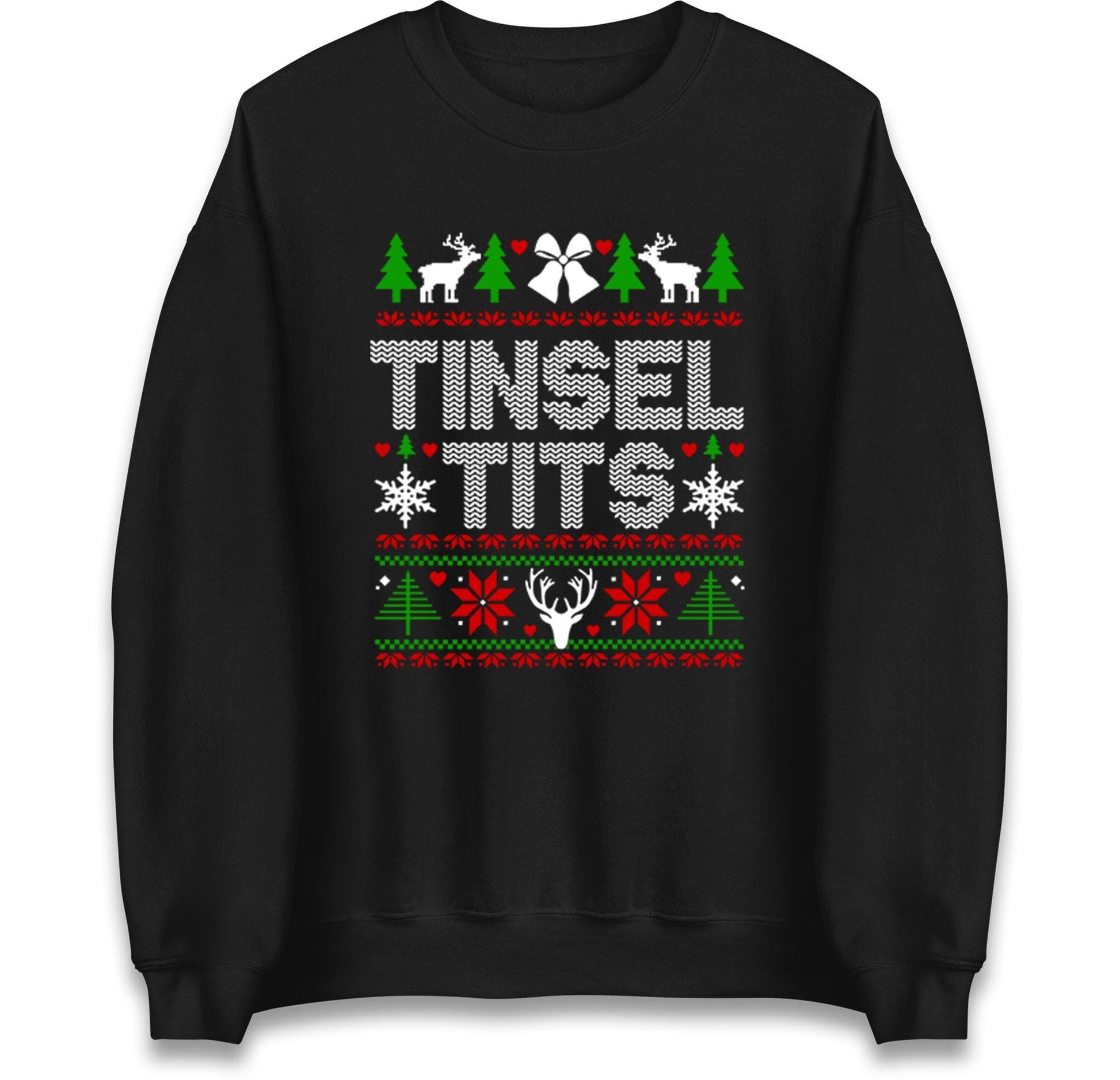 Funny Rude Christmas Jumper Tinsel T*ts, Funny Xmas Santa Hoodie, Adventure Christmas T Shirt, Festive Gift Top