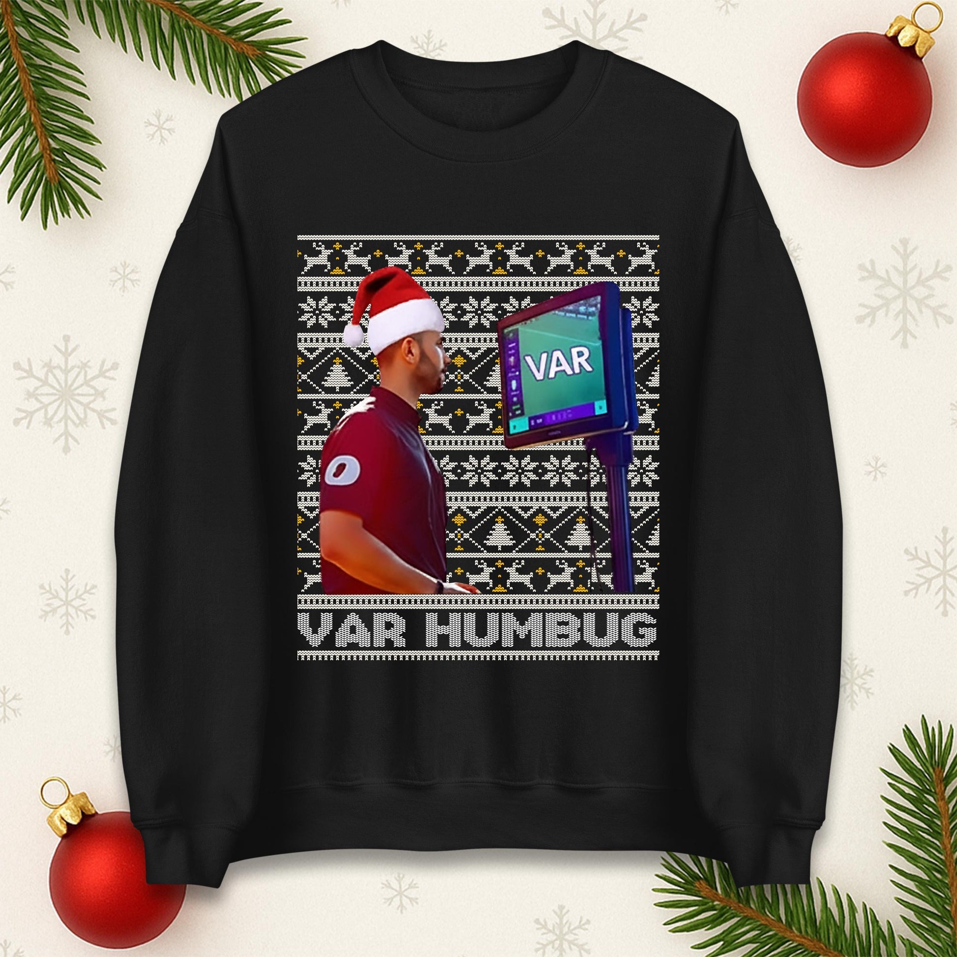 Funny VAR Humbug Christmas Jumper, Ugly Xmas Football Referee Hoodie, Spoof Soccer Fan T Shirt, Humorous Festive Gift Sweatshirt