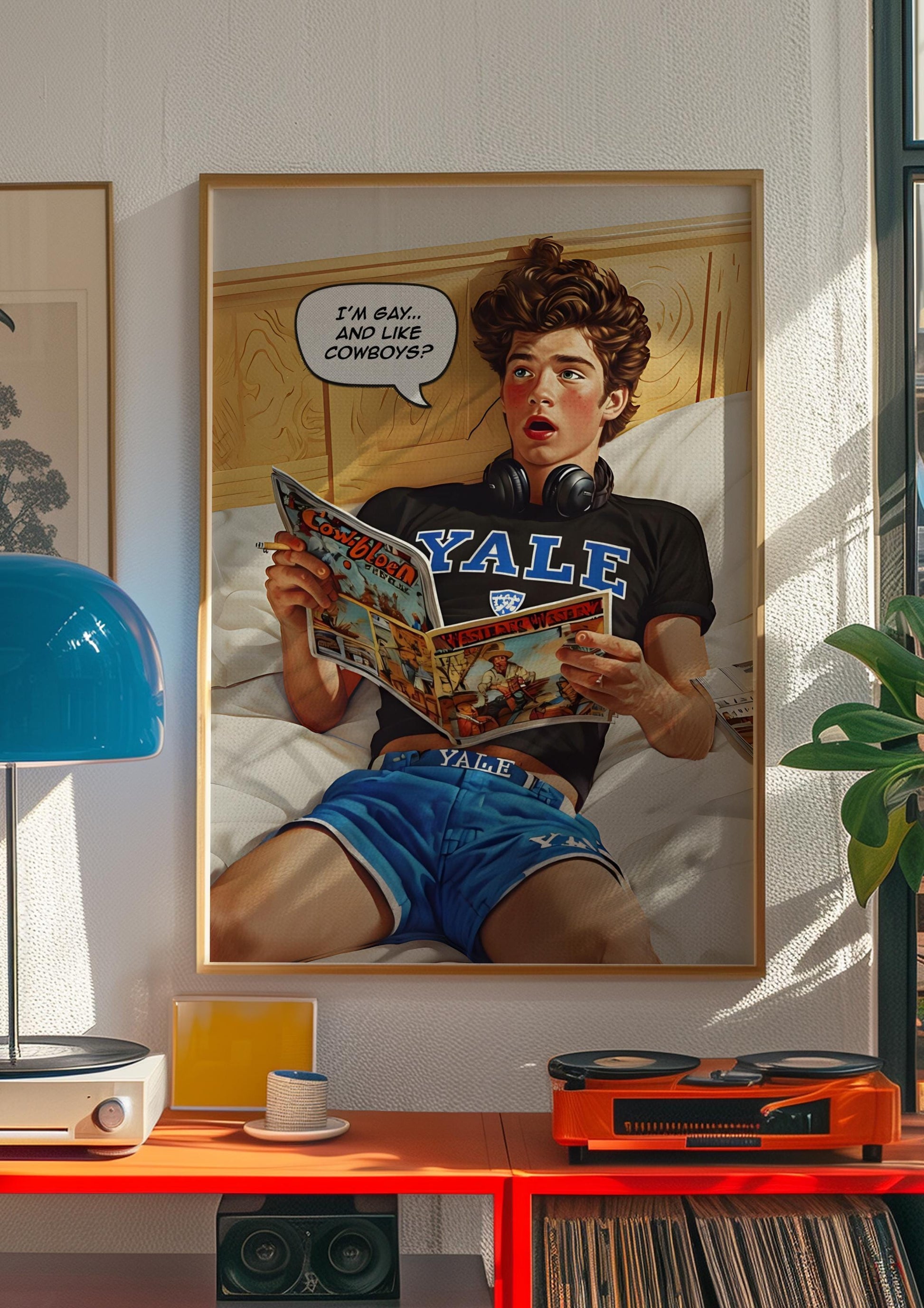 Gay Harvard Cowboy - harvard university, gay cowboy, college room wallart, ralph lauren poster, queer western cowboy, vintage cigarette ad