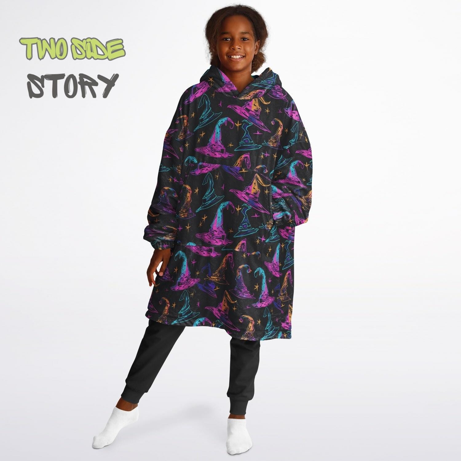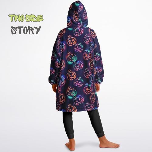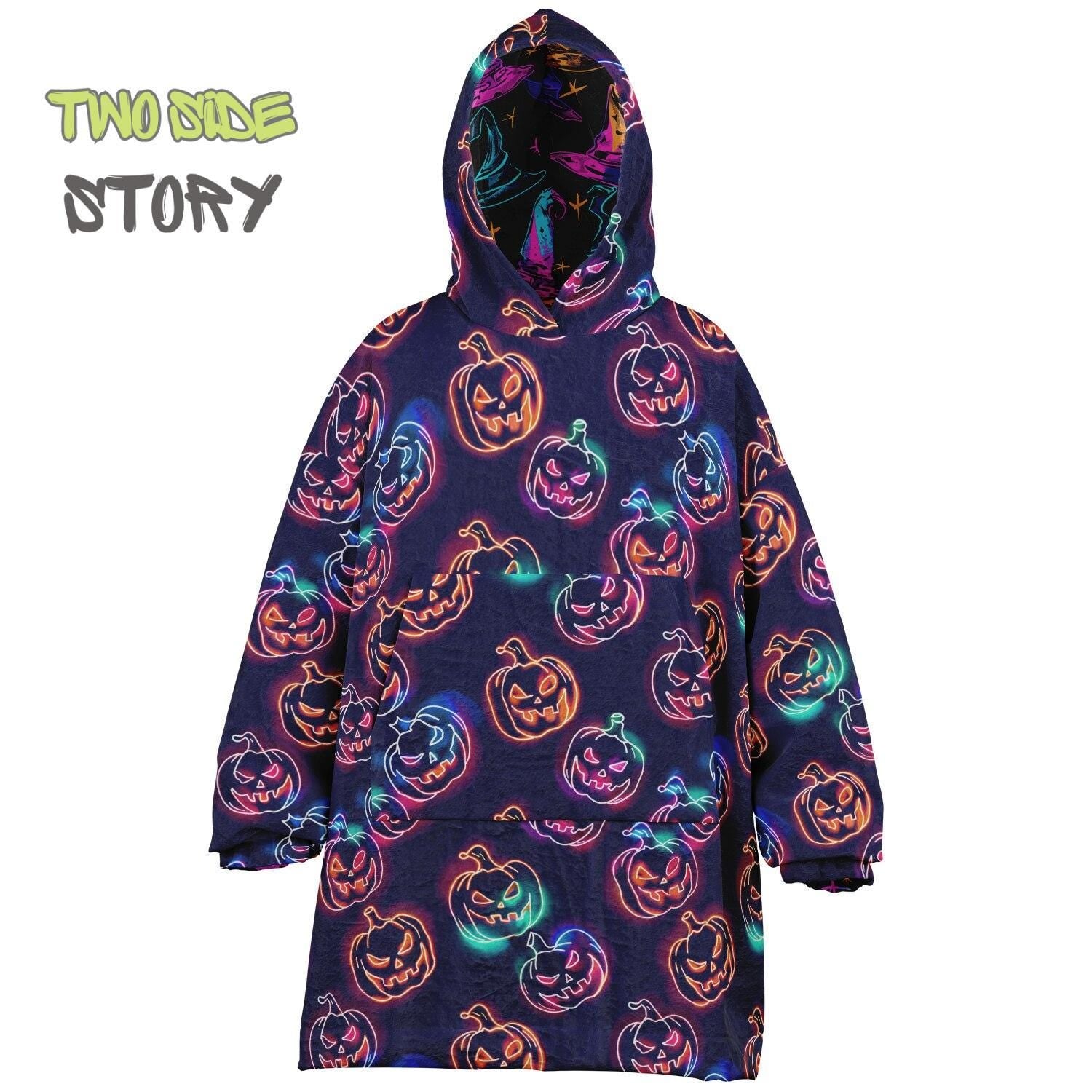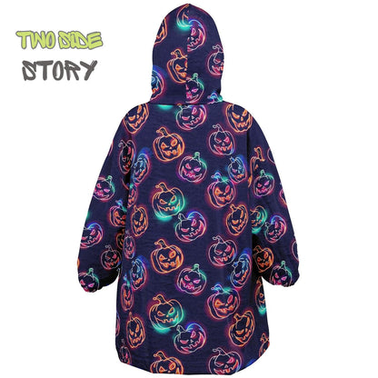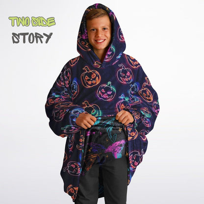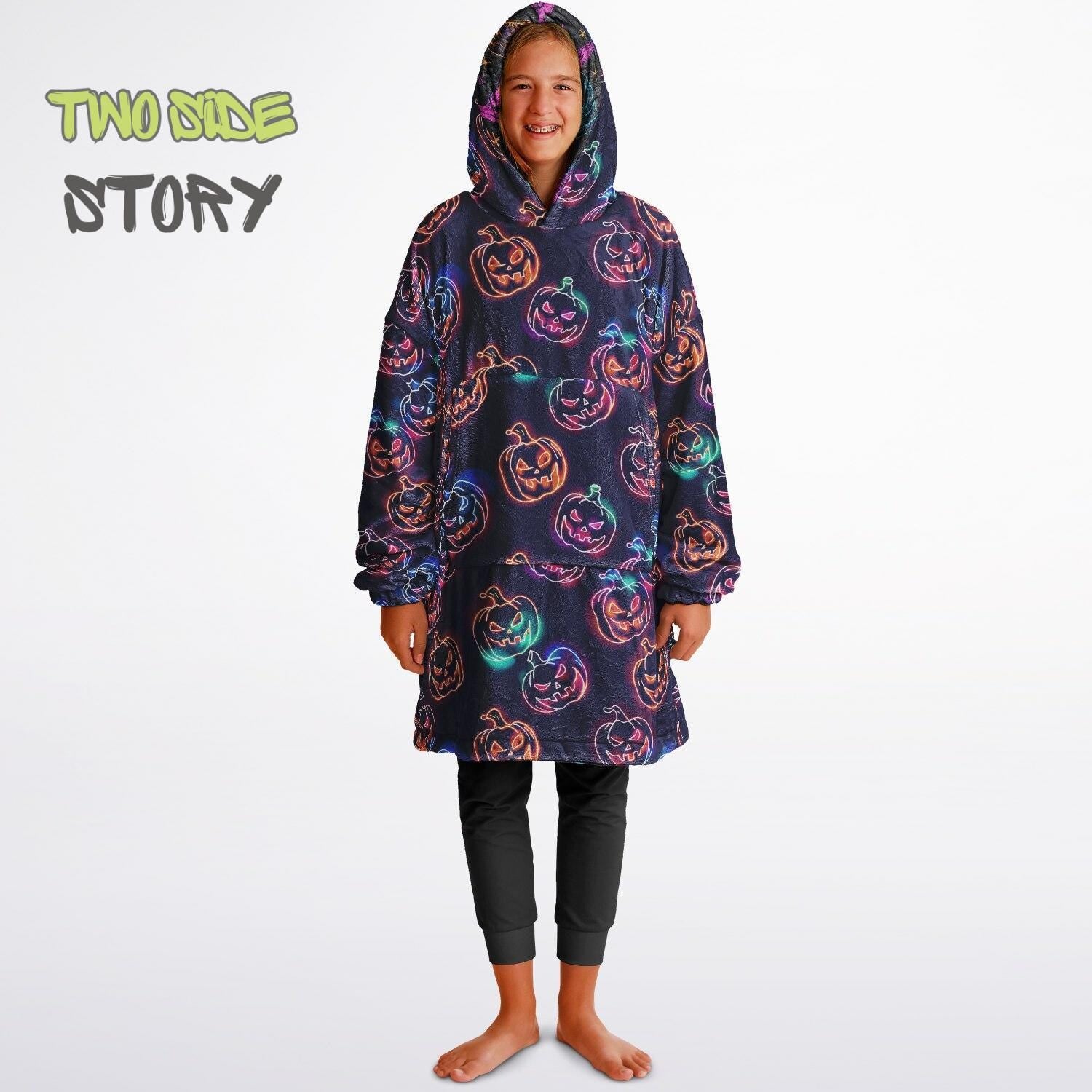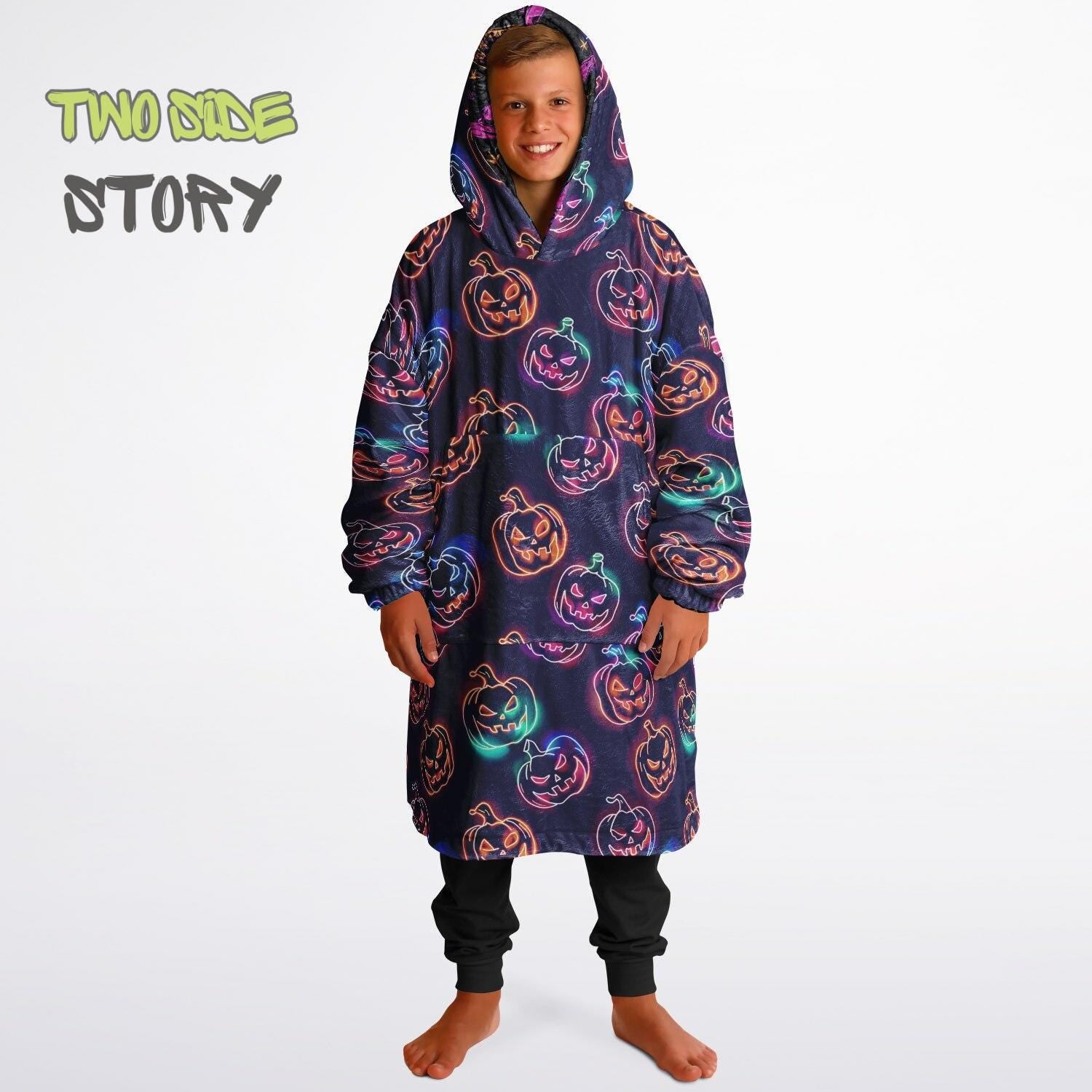 Glowing Pumpkins Halloween Reversible Kids Snug Hoodie,Oversized Double Sided Youth Hoodie Blanket,Warm Blanket with Sleeves,Unique Gifts