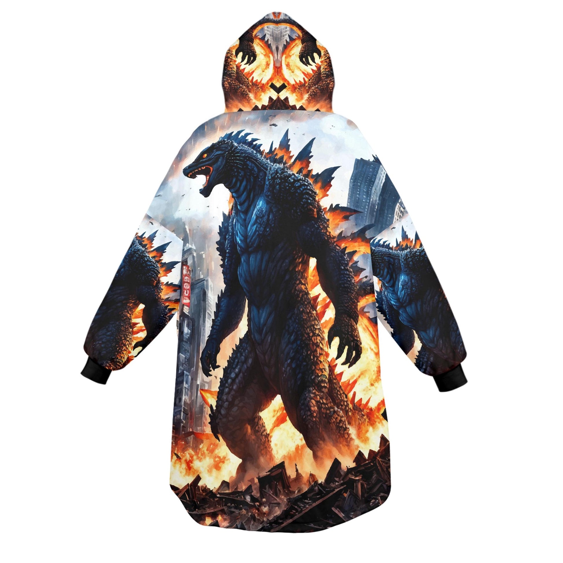 Godzilla Blanket Hoodie Retro Kaiju Monster Fleece Blanket