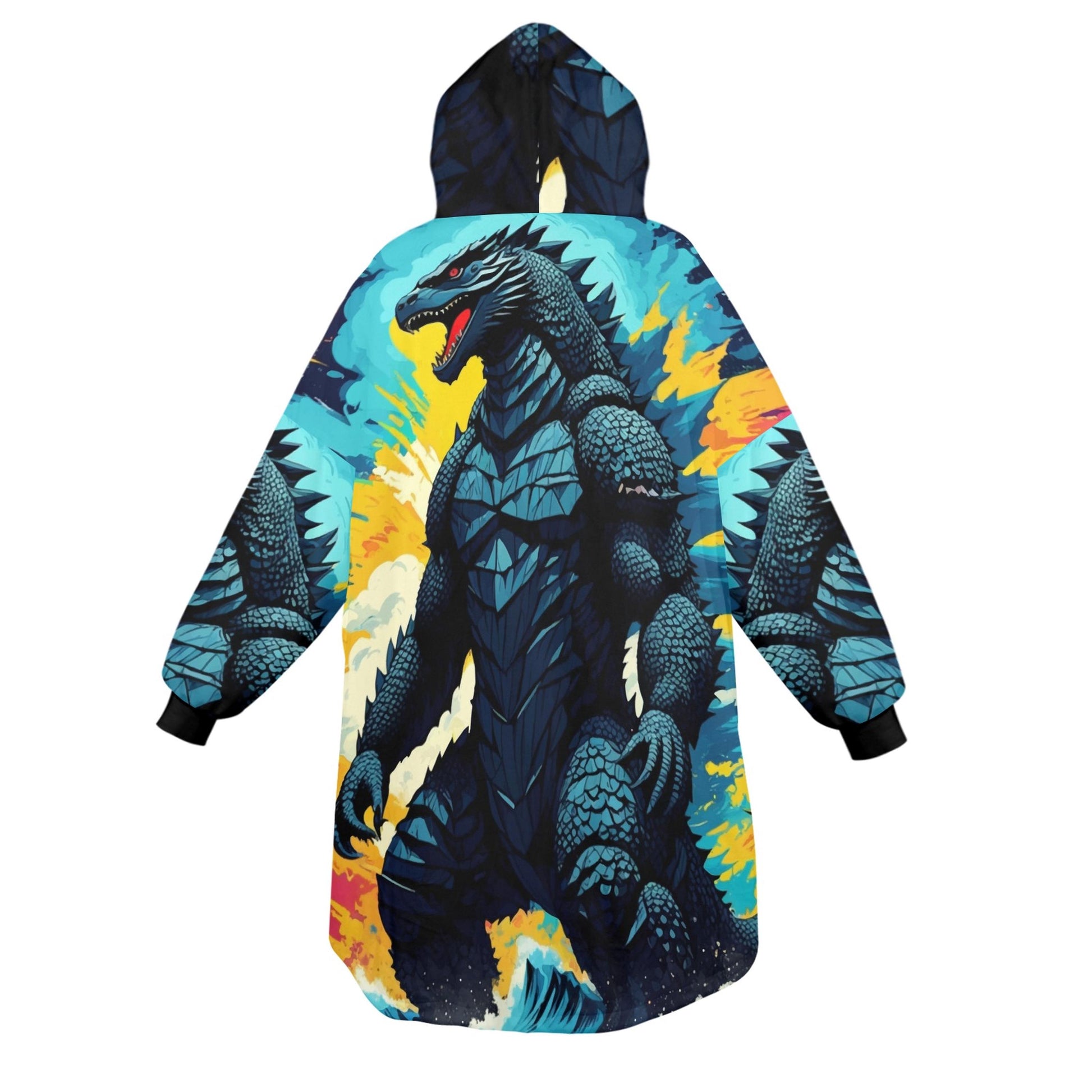 Godzilla Blanket Hoodie Vintage Kaiju Fleece Lounger