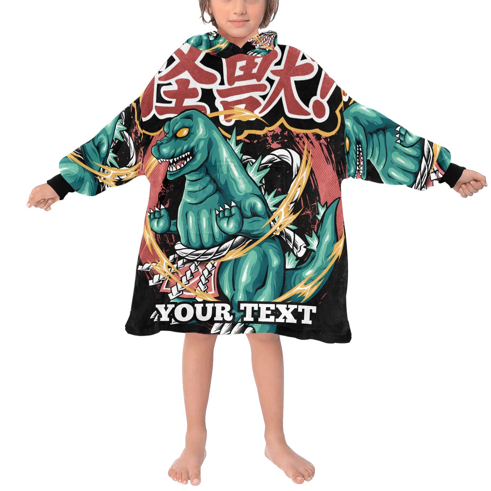 Godzilla Kids Hoodie Blanket Gift Personalized Text