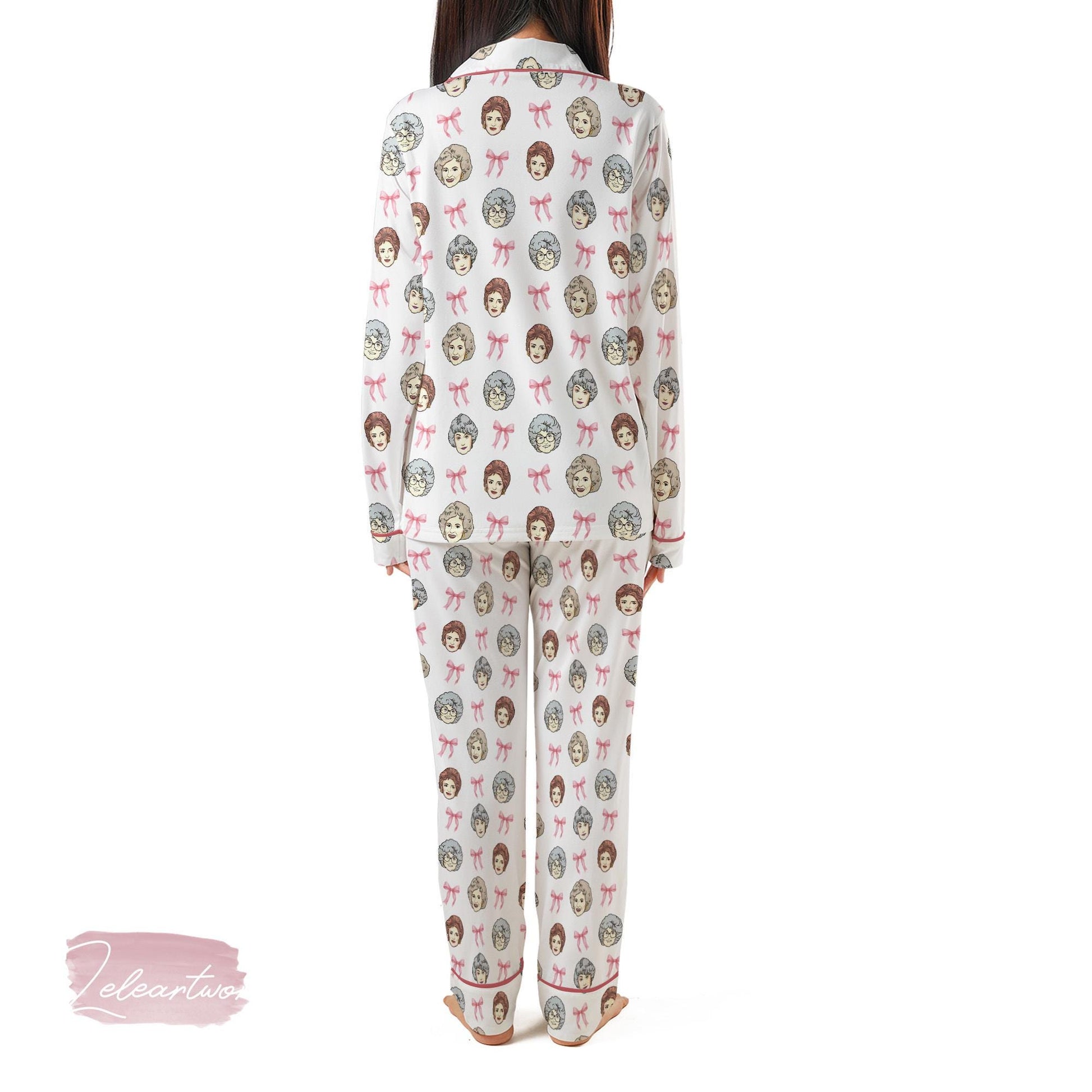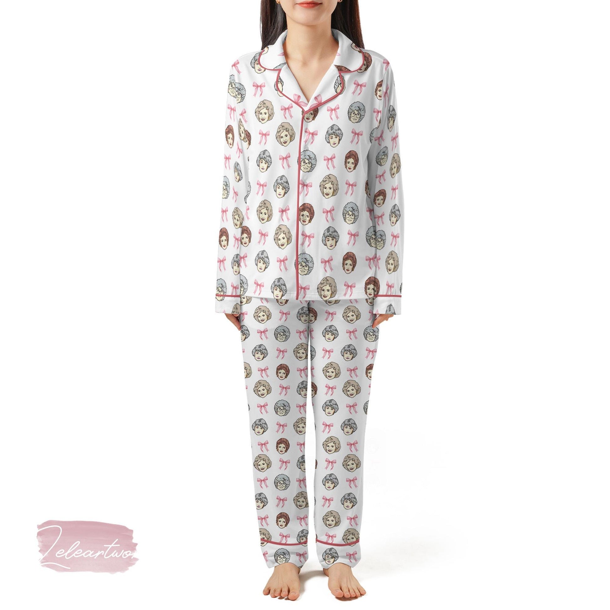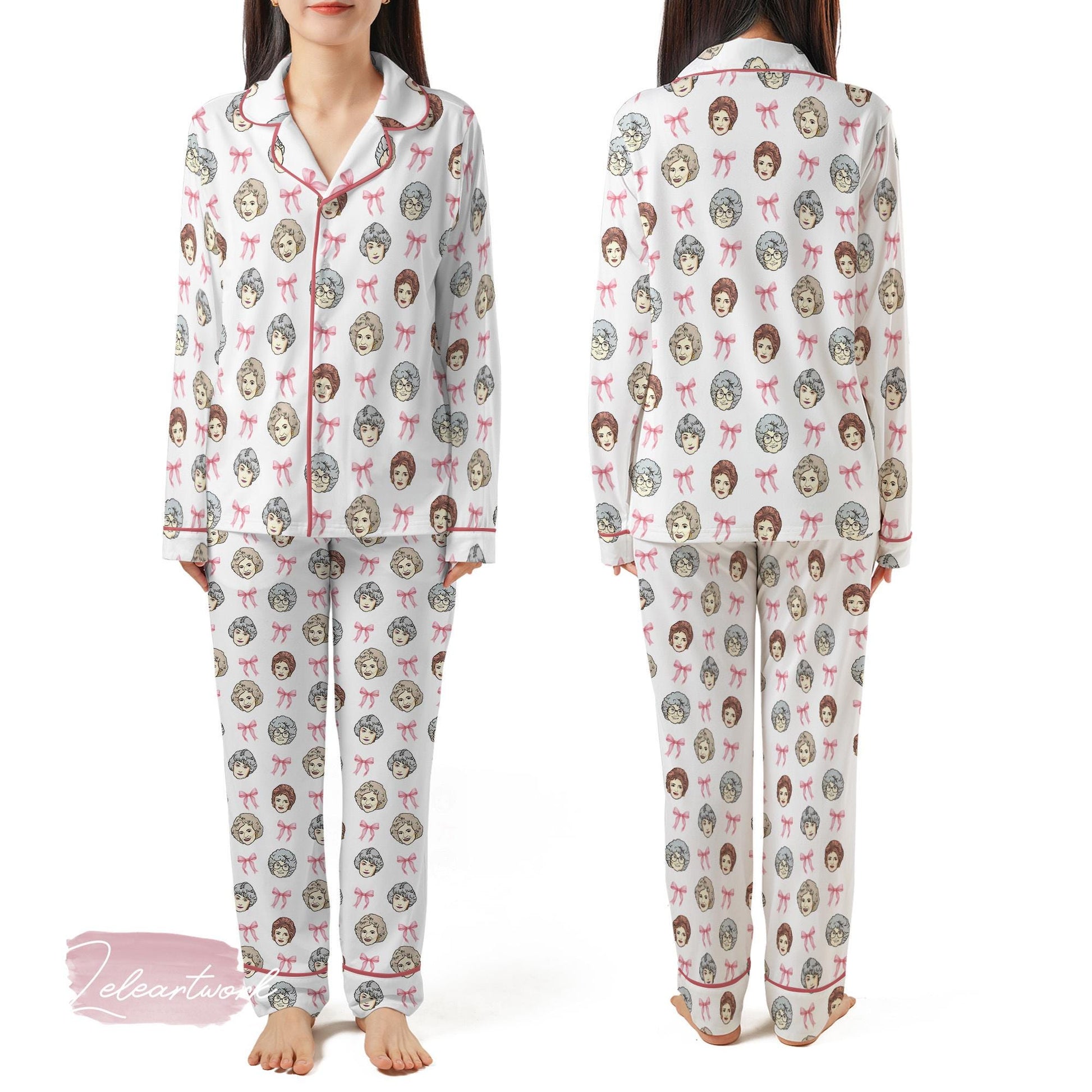 Golden Girls Coquette Set | Silky Satin Pajama Set for Women | Pink Bow Retro Sleepwear | Funny Lounge Set for Best Friends & TV Lovers