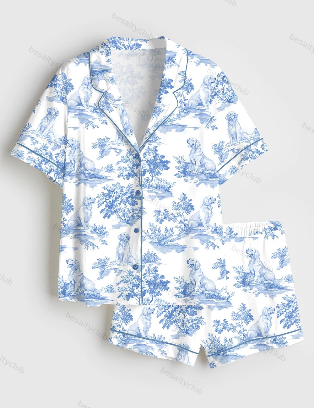 Golden Retriever Dog Lover Short Sleeve Satin Pajama Set