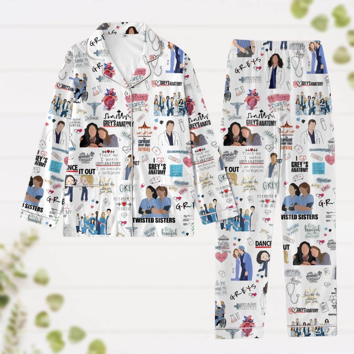 Greys Anatomy Pajamas, Meredith Grey Pj Set, Women Nursing Pajamas Set, Tv Series Christmas Pjs, Pajamas For Holiday Party, Xmas Gift