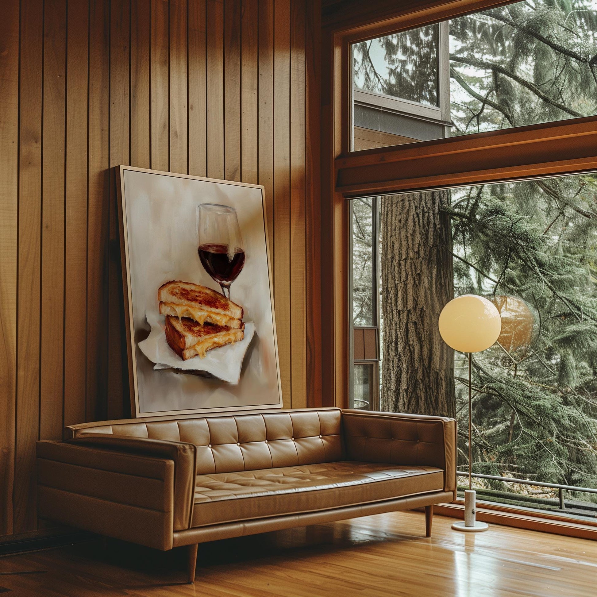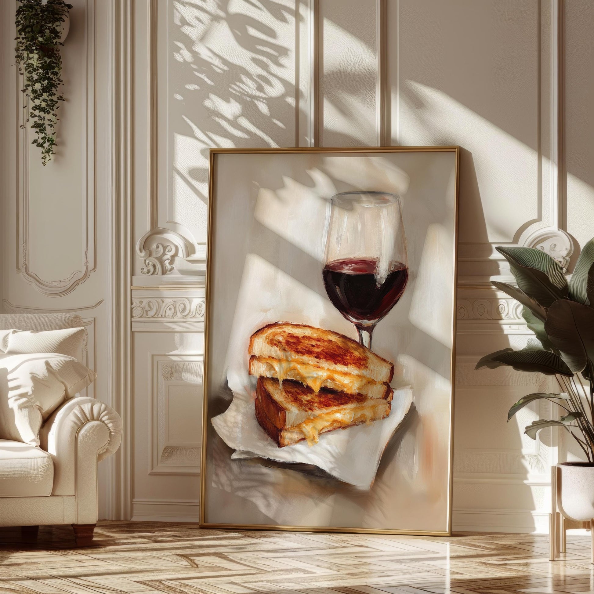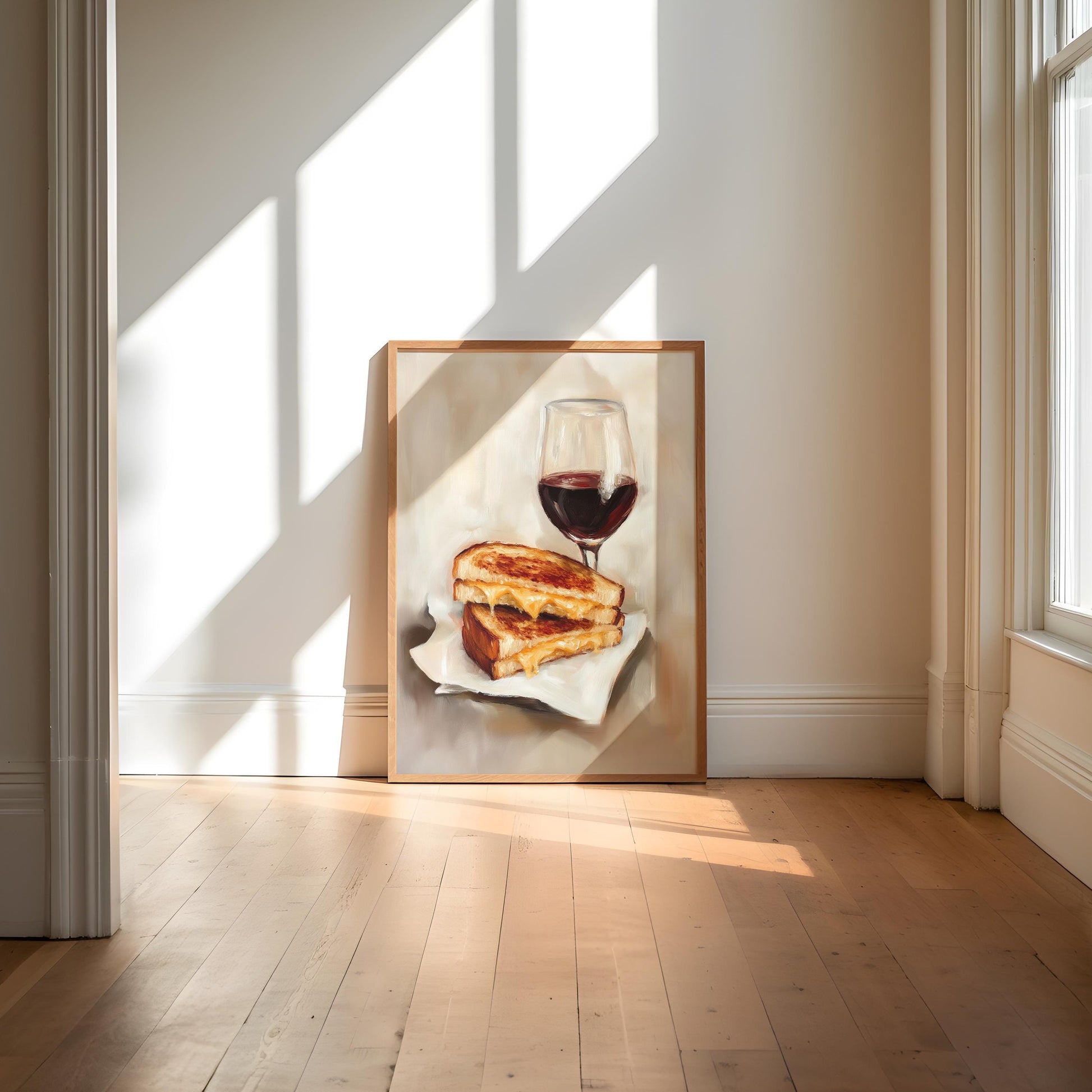 Grilled Cheese and Red Wine Art Print | Cute Quirky Whimsical | Cocktail Art Bar Cart Decor | Grilled Cheese Art Gift | Trendy Home Wall Art