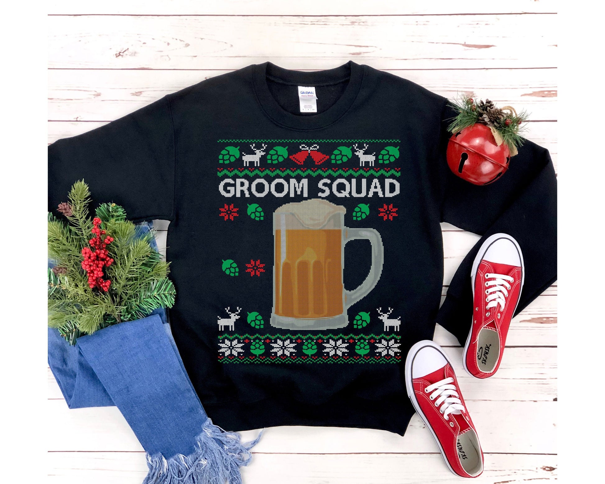 Groom Squad Ugly Christmas Sweatshirt | Funny Holiday Bachelor Party Shirt | Beer Themed Grooms Men Best Man Engagement & Wedding Party Gift