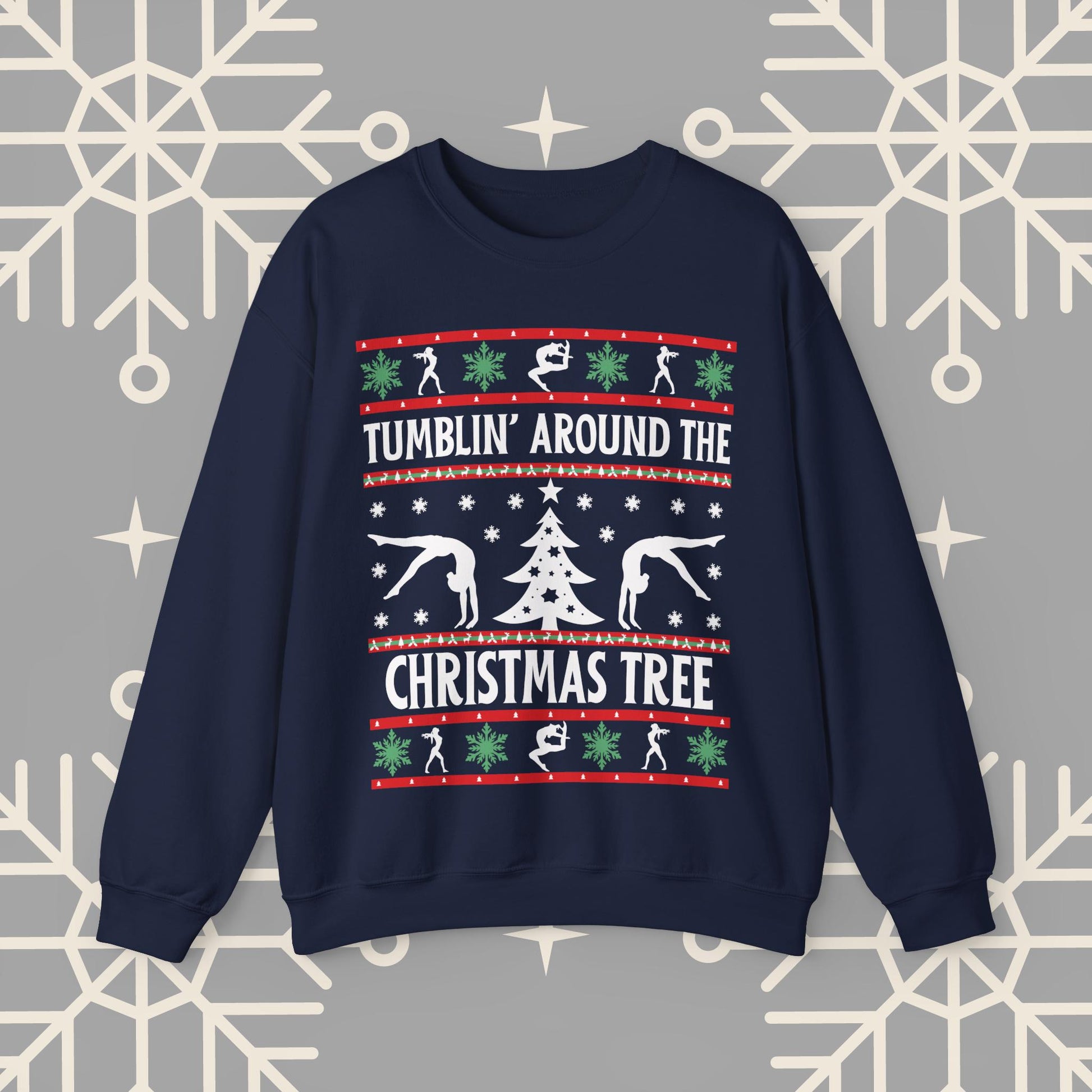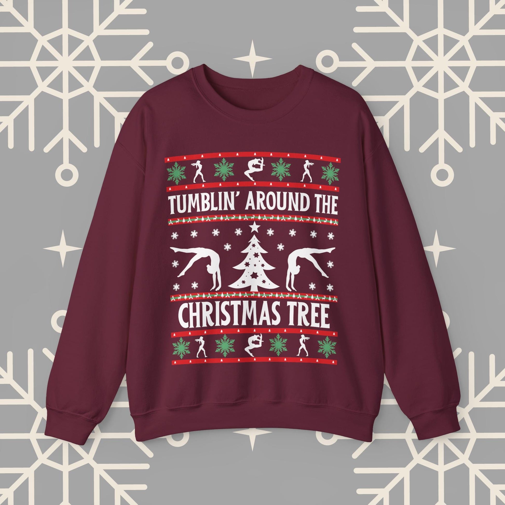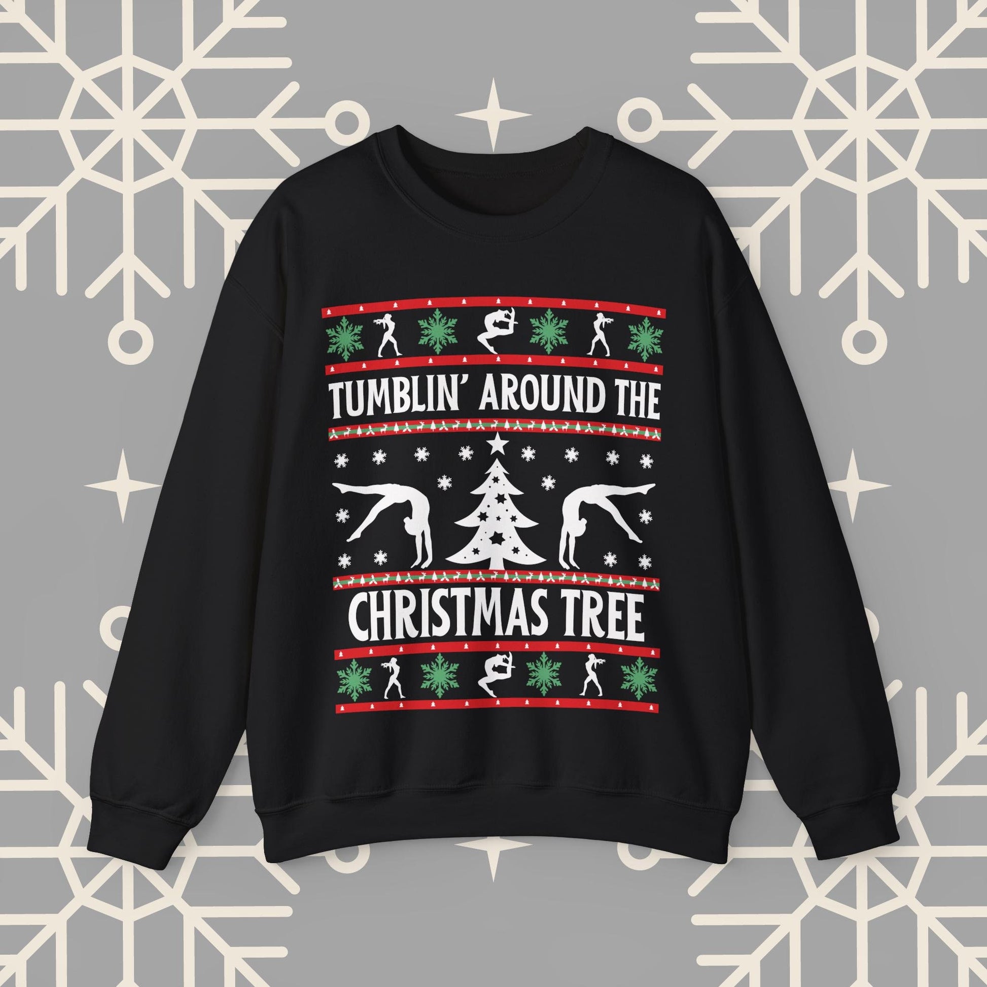 Gymnastics Ugly Christmas : Tumbling Around the Christmas Tree Gymnast Sweatshirt
