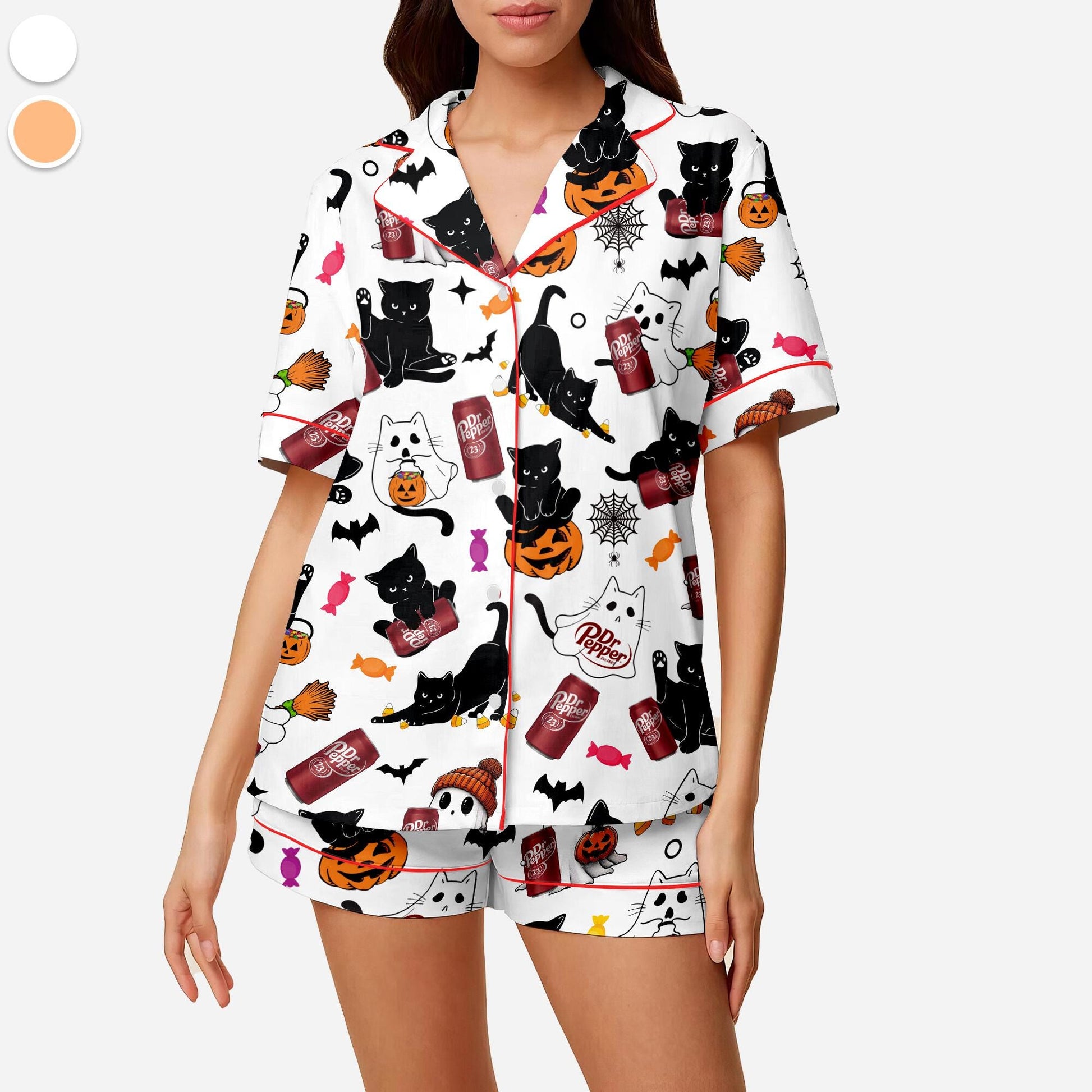Halloween Dr Pepper Pajamas Set, Coquette Halloween, Dr Pepper Lovers Sleepwear, Dr Pepper Cat Loungewear, Halloween Gift, Cute Halloween