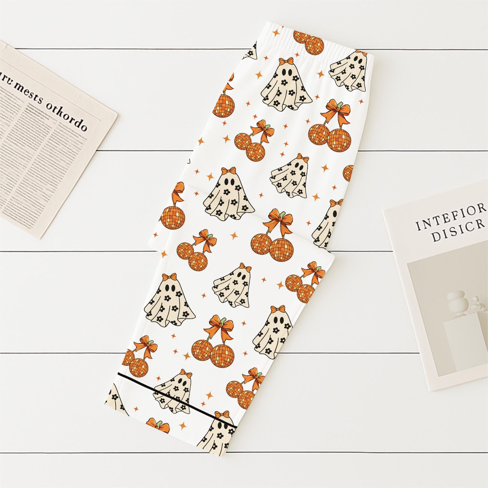 Halloween Ghost And Bow Pajamas Set, Halloween Cute Ghost Sleepwear, Cozy Loungewear, Spooky Season Gift, Fall Season Nightwear