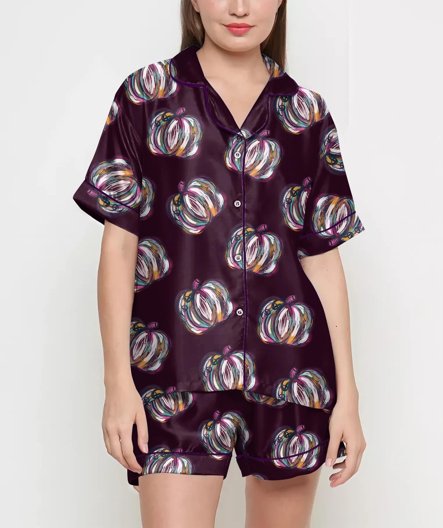 Halloween Gifts, Halloween Shirt, Watercolor Pumpkin Pajama Satin Set, Halloween Coquette, Spooky Season, Cute Fall Gift, Gift For Halloween