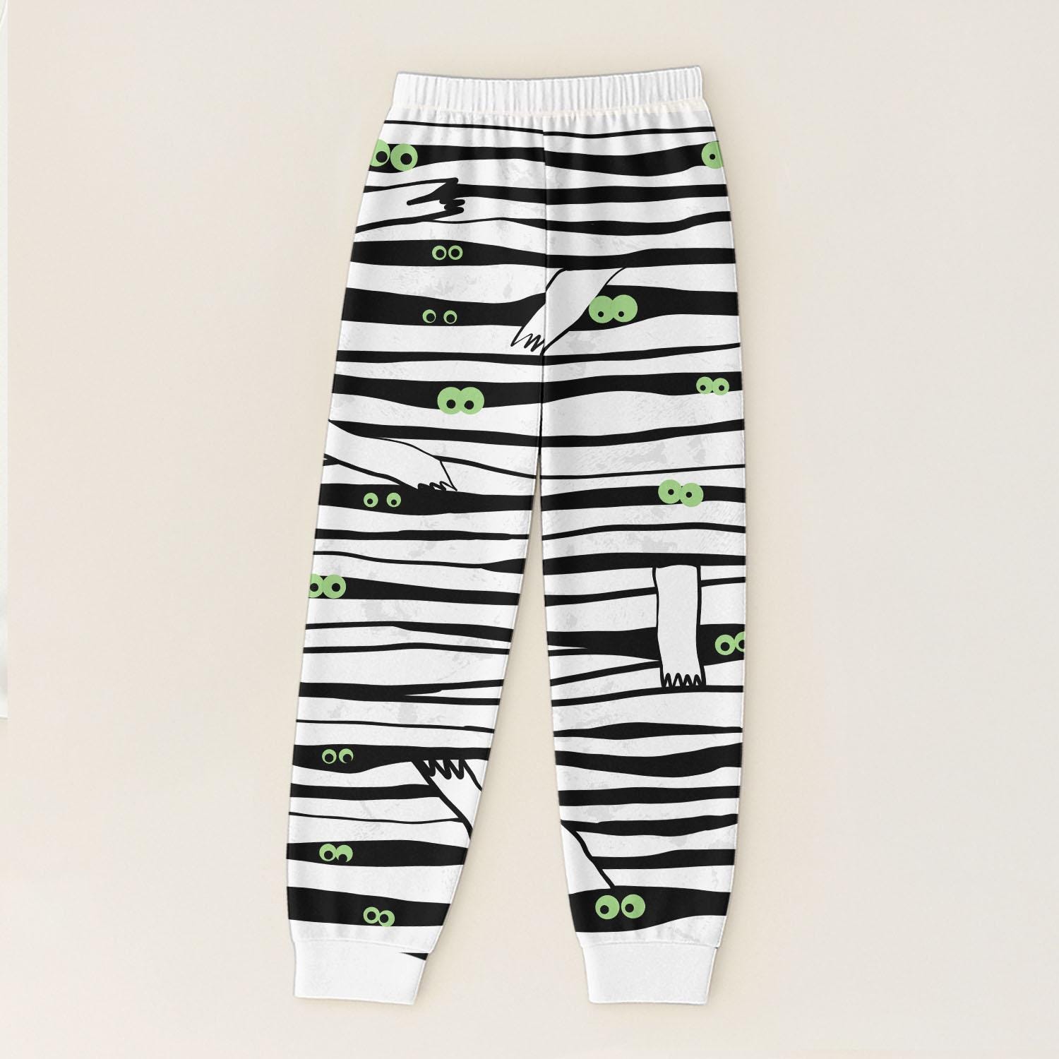 Halloween Mummy Eyes T Shirt And Pants Pajamas, White Crew Neck Sleepwear, Halloween Characters Homewear, Spooky Season Gift