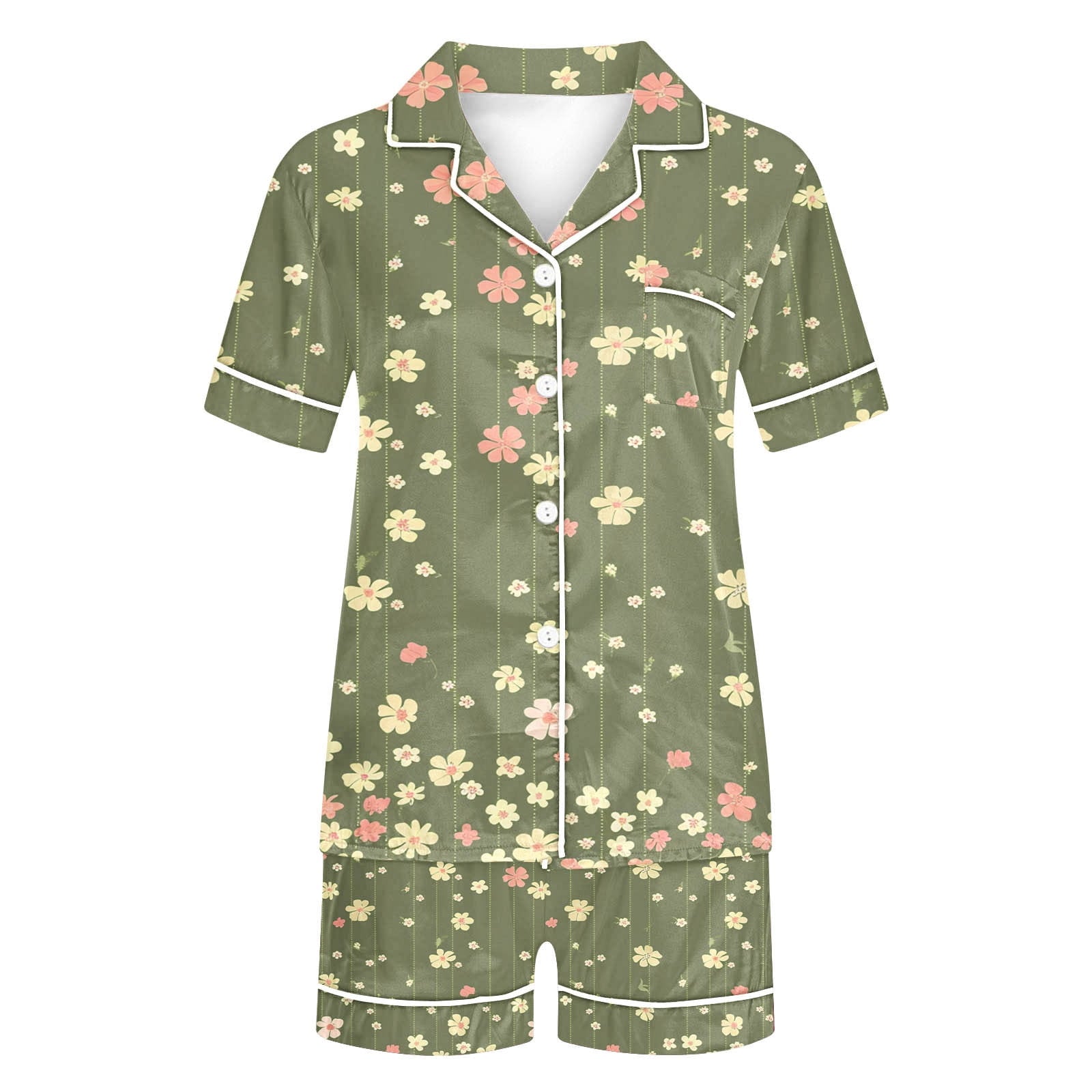 Halloween Pajamas Fashion Casual Printed Short Sleeve Lapel Top with Shorts Loose Comfortable Home Pajama Set Green