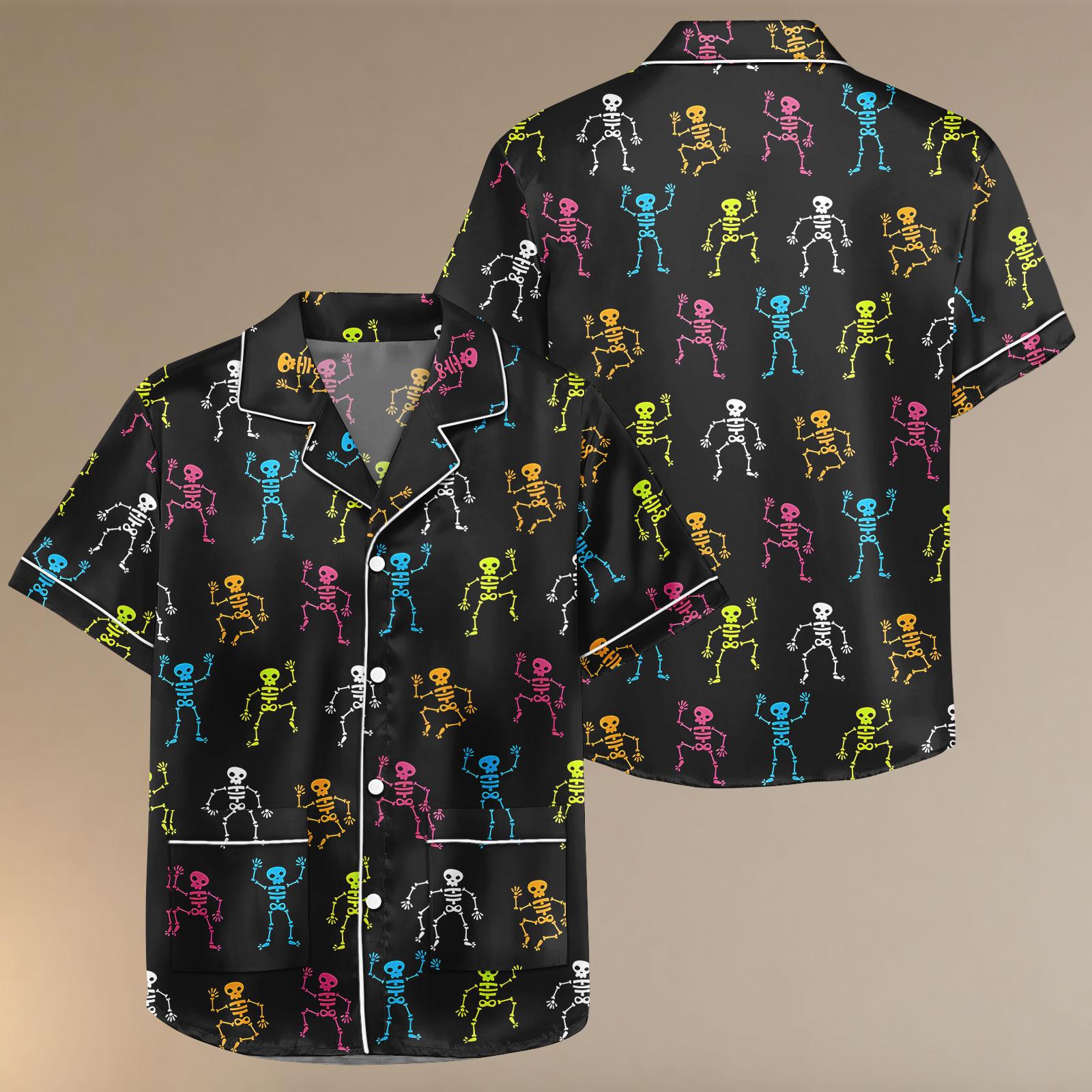 Halloween Skeleton Satin Pajamas, Skeleton Satin Pajamas Shorts, Spooky Pajamas, Halloween Sleepwear, Unisex Skeleton Pjs, Gift For Her