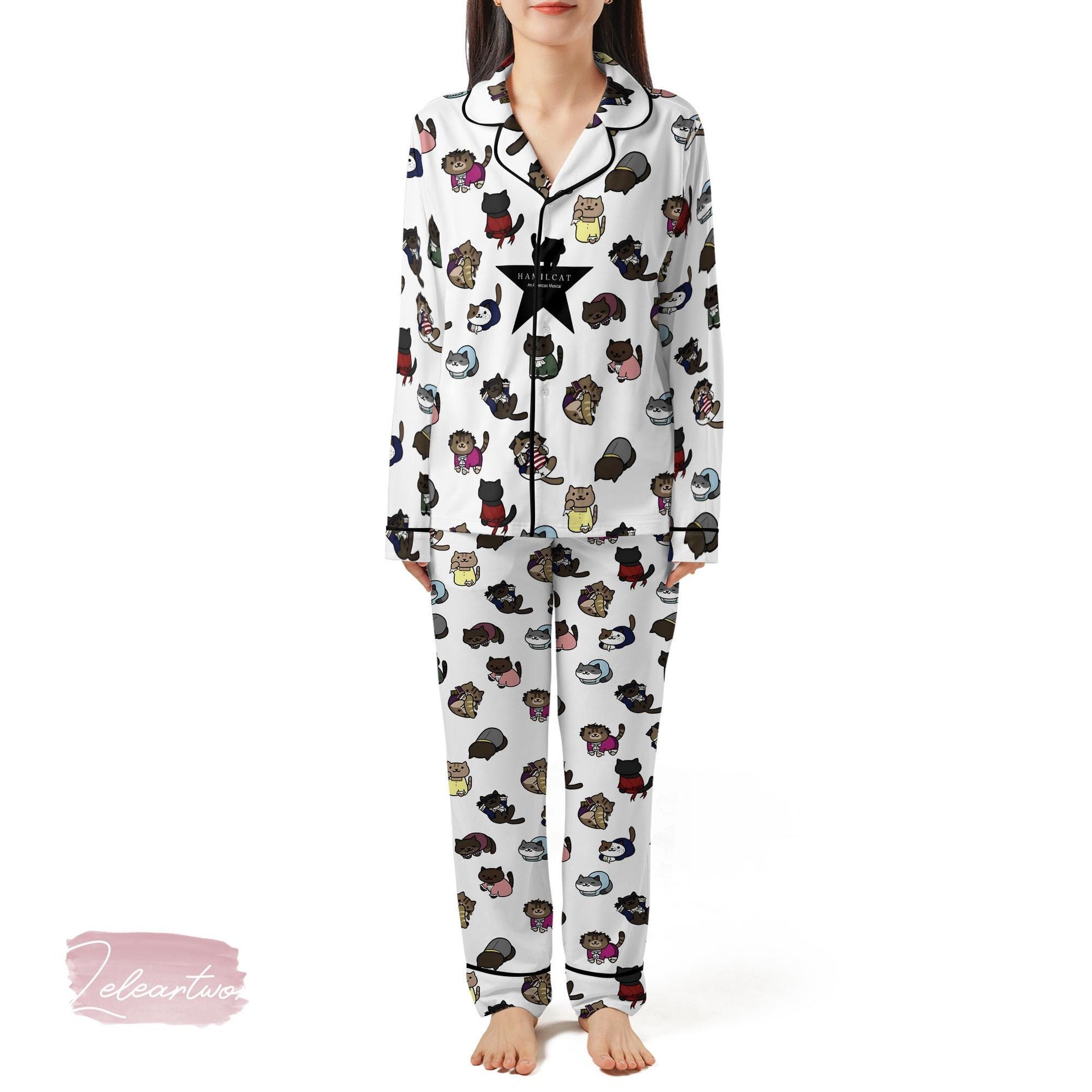 Hamiltoncat Silky Satin Pajama Set For Women | Musical Theater Cat Sleepwear | Cute Broadway-Inspired PJs | Gift for Cat & Theater Fans