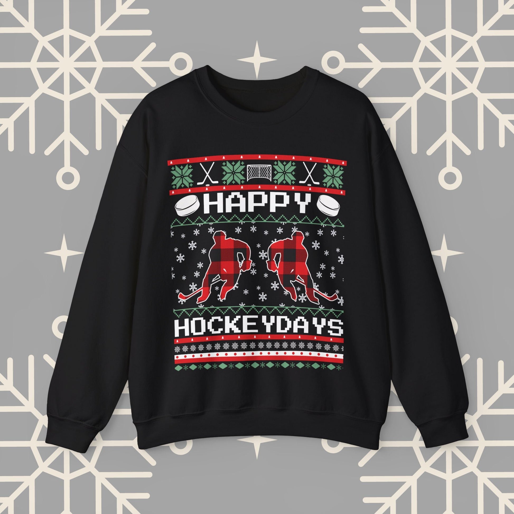 Happy Hockeydays Ugly Christmas , Hockey Christmas Sweatshirt, Holiday Ice Hockey Crewneck, Gift for Hockey Player