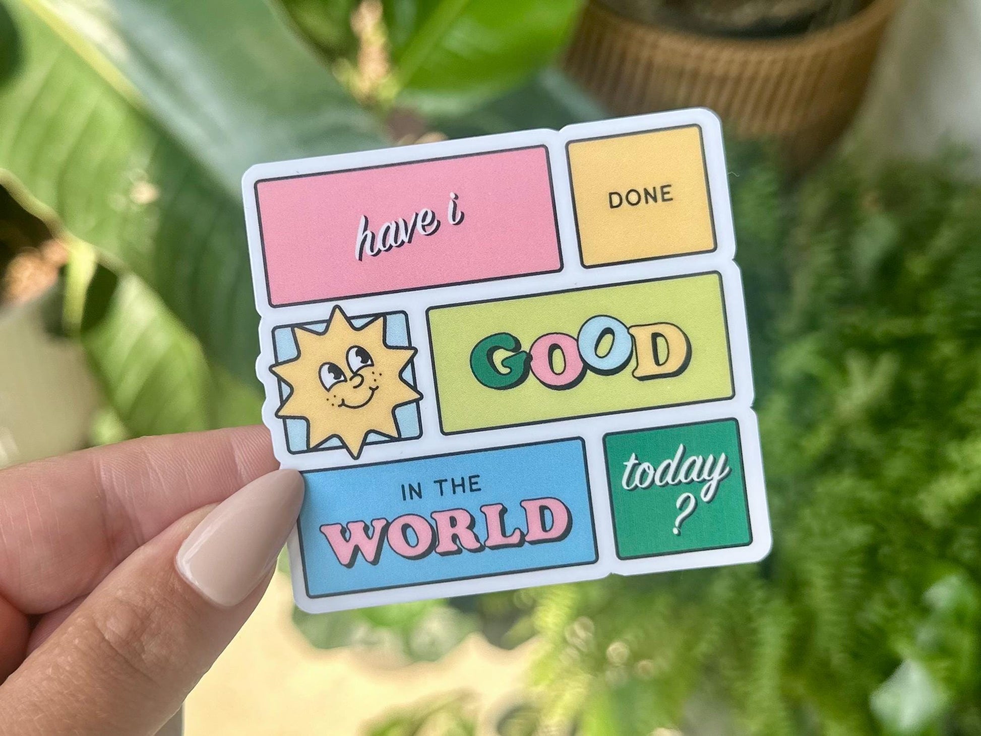 Have I Done Good In The World Today Waterproof Sticker, Mental Health Stickers, Handdrawn Art, Bestfriend Gifts, Positivity