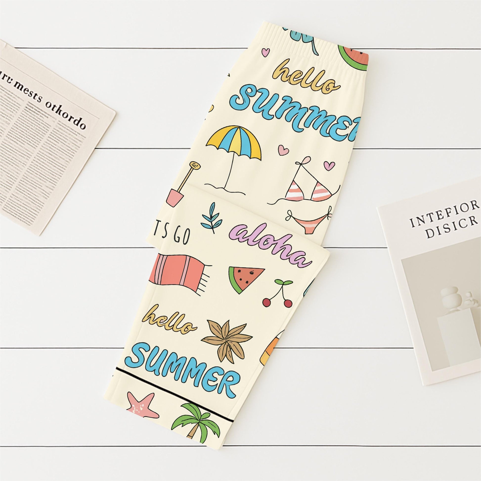 Hello Summer Pajamas Set, Aloha Summer Sleepwear, Beach Pattern Homewear, Marine Life Pjs, Funny Vacation Gift