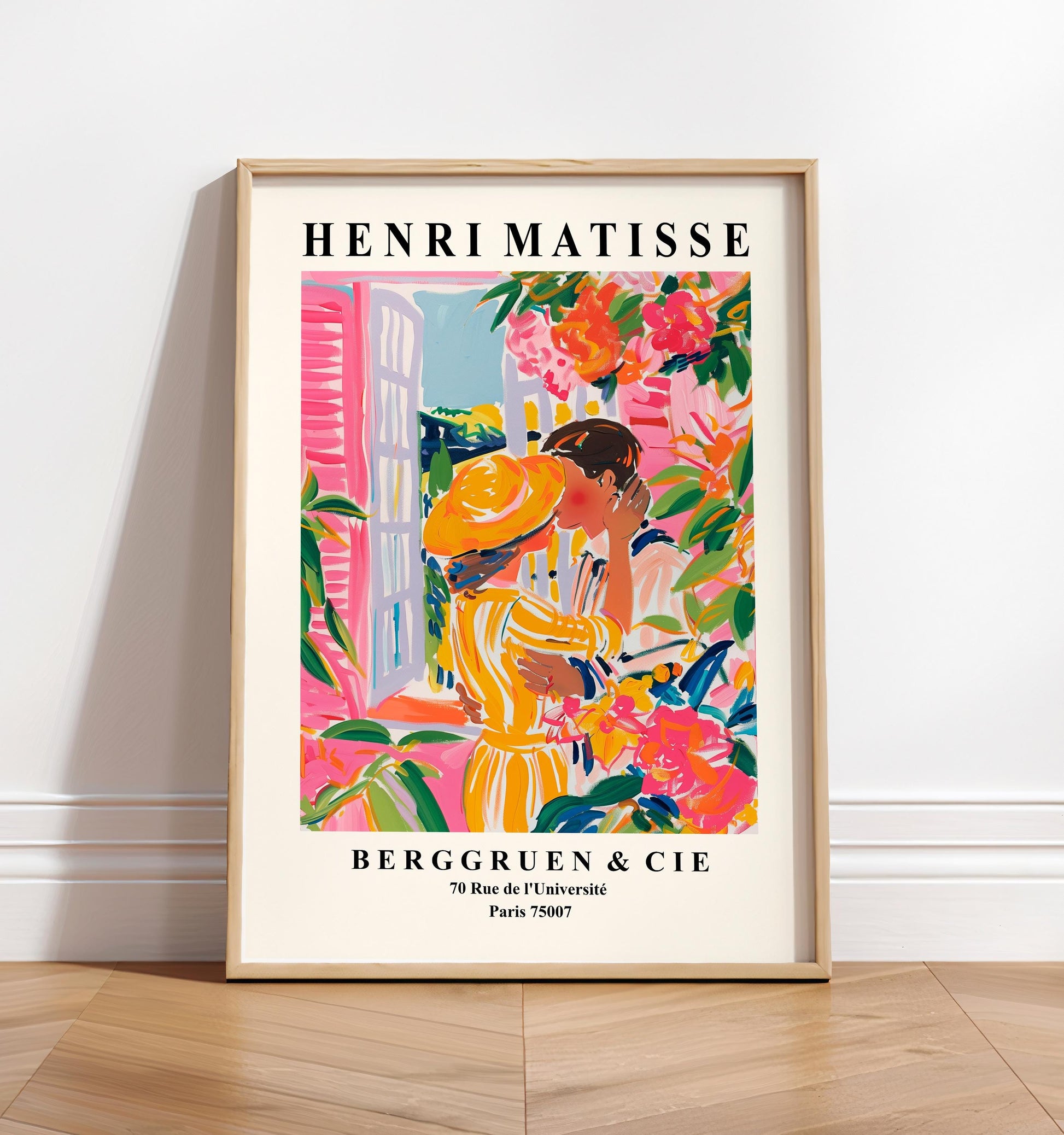 Henri Matisse Inspired Couple Kissing Art Print: Romantic Summer Decor