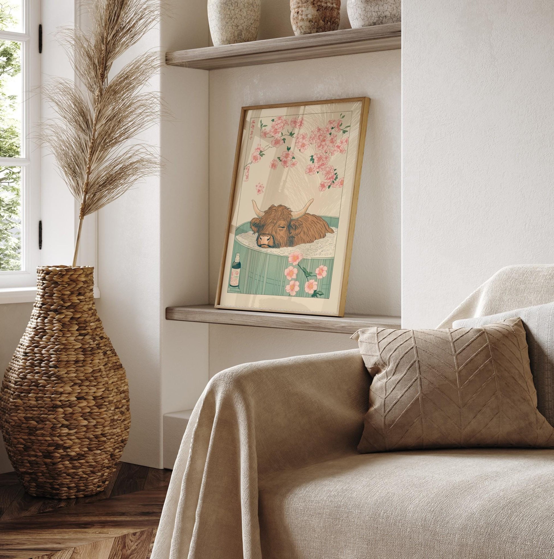Highland Cow Print: Ukiyo-e Japanese Bathroom Wall Art