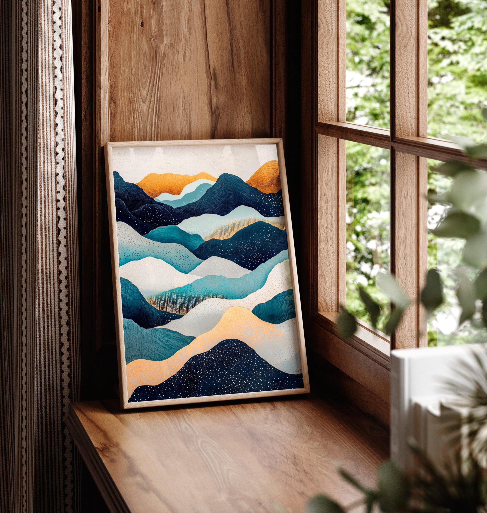 Hokusai Ukiyo-e Japanese mountains wall art, Japandi home decor, Landscape poster, Blue green print