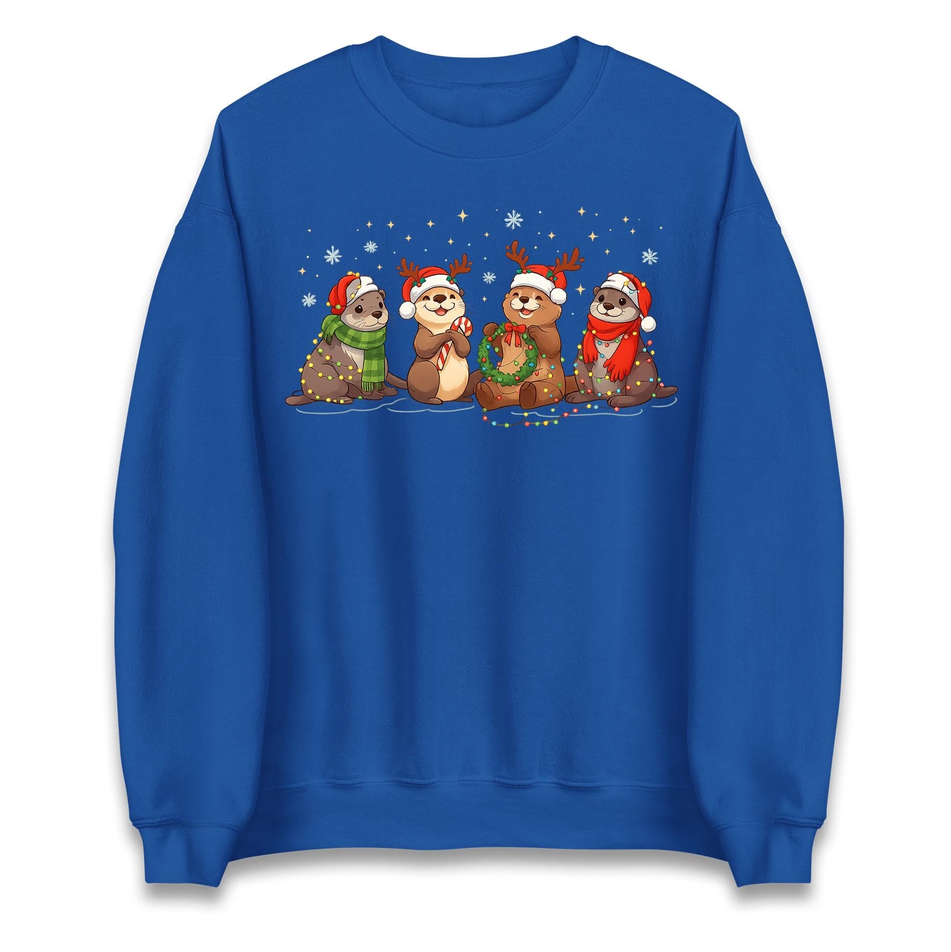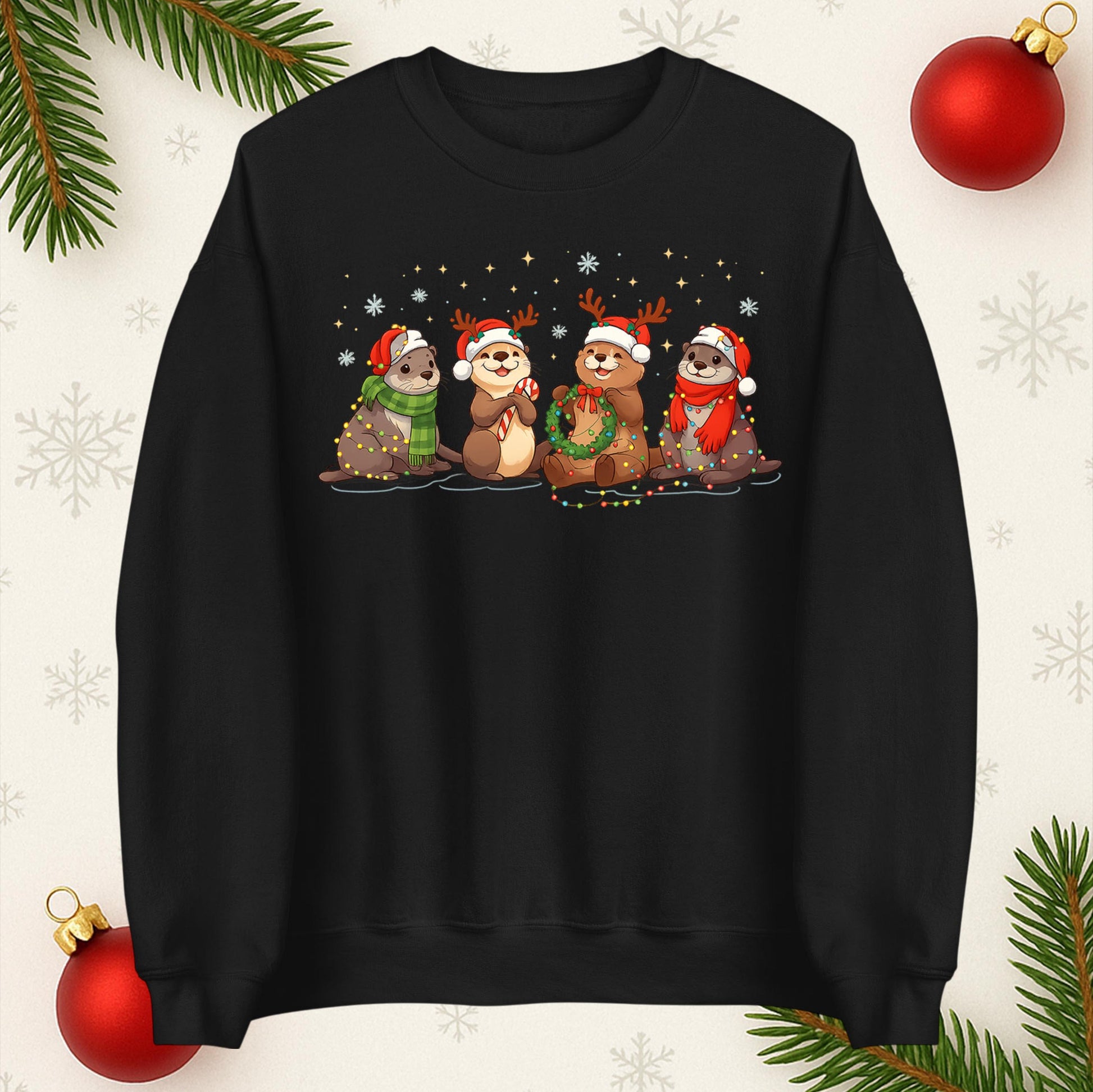 Holiday Otters Festive Christmas Jumper, Xmas Funny Otters Hoodie, Christmas T Shirt