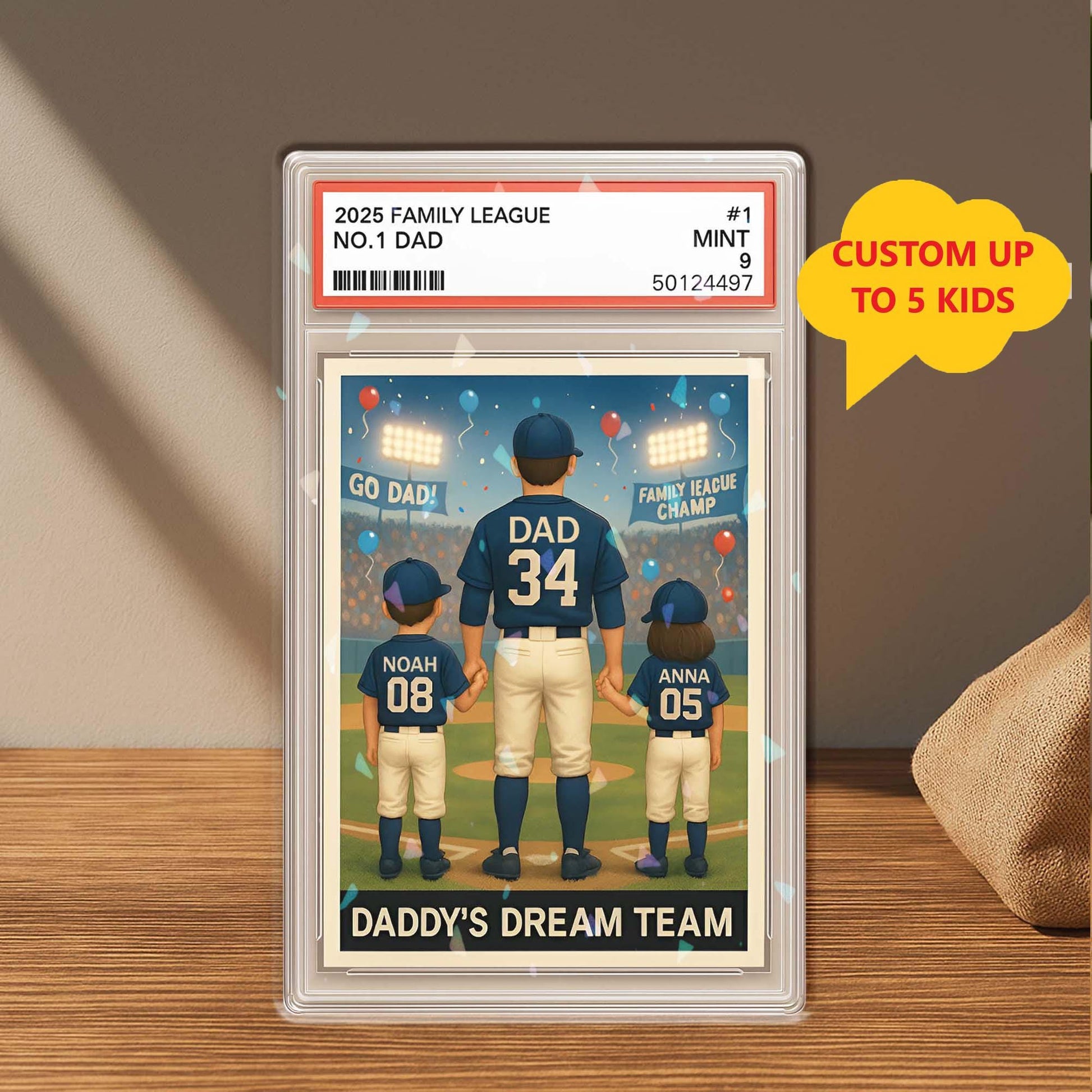 Hologram Baseball No. 1 Dad Grandpa Man & Kids Trading Card Style, Custom Acrylic Block Plaque, Baseball Dad Gift, Father's Day Gifts