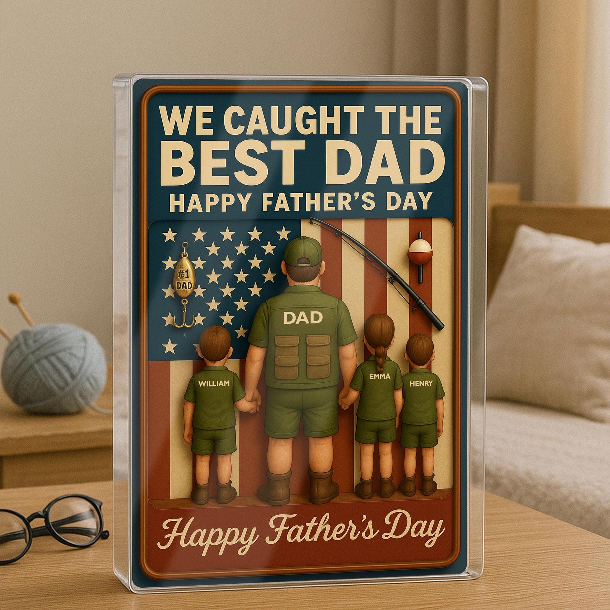 I Caught The Best Dad, Fishing Action Figure Personalized Acrylic Block Plaque, Father's Day Gift for Dad, Custom Kids Name Decor For Dad