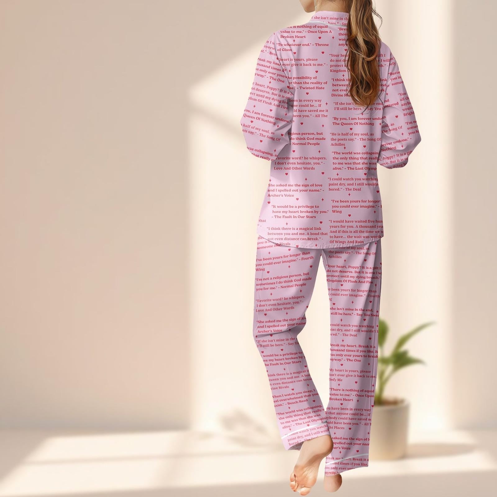 I Love You In Books Satin Pajama Set, Pink Literary Quote Sleepwear For Women, Cozy Reading Nightwear Pjs, Book Lovers Gift