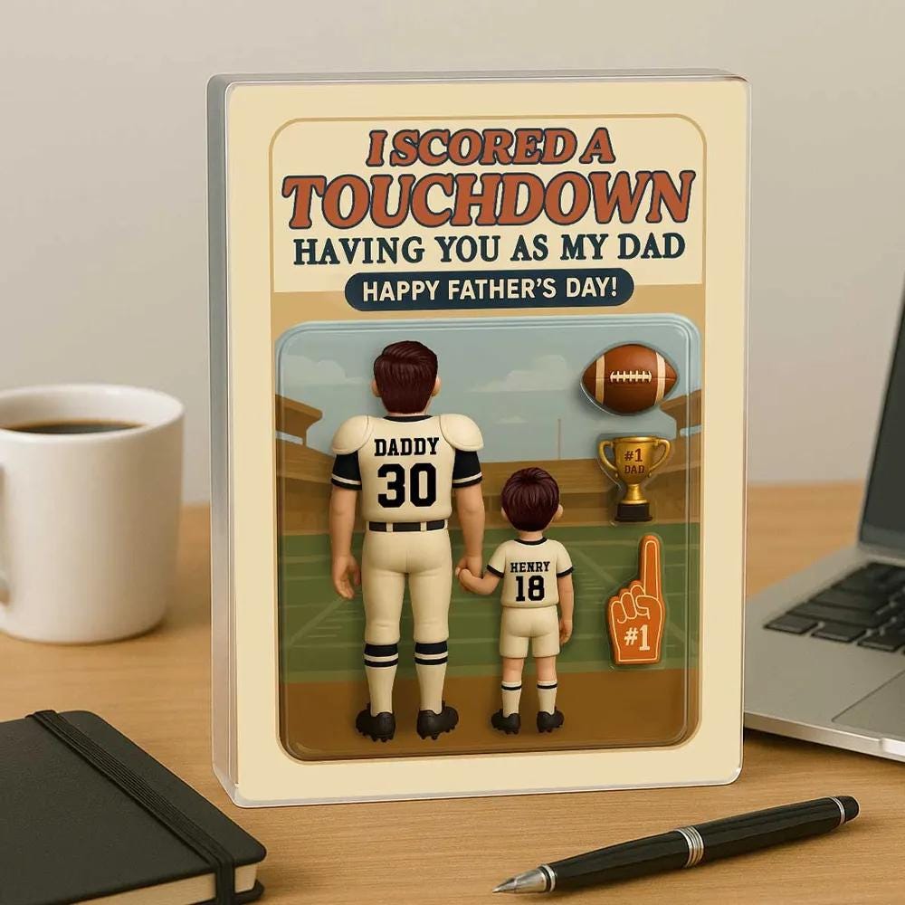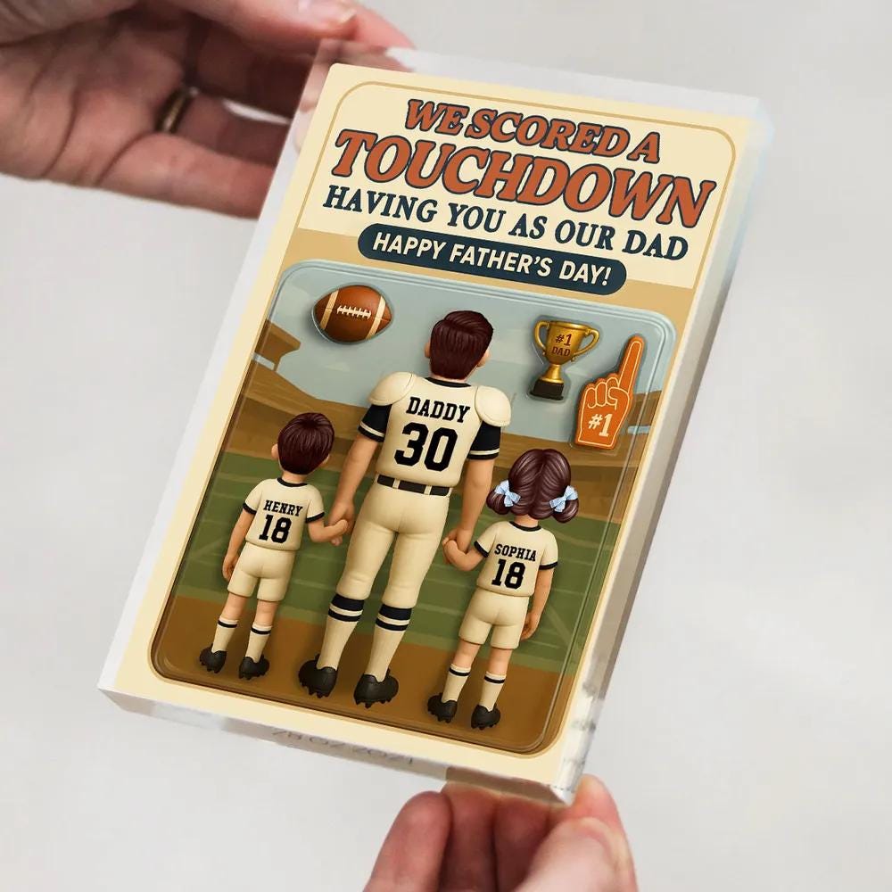 I Scored A Touchdown Having You as my Dad, Custom Figure Personalized Acrylic Block Plaque, Father's Day Gift for Dad, Gift for Husband