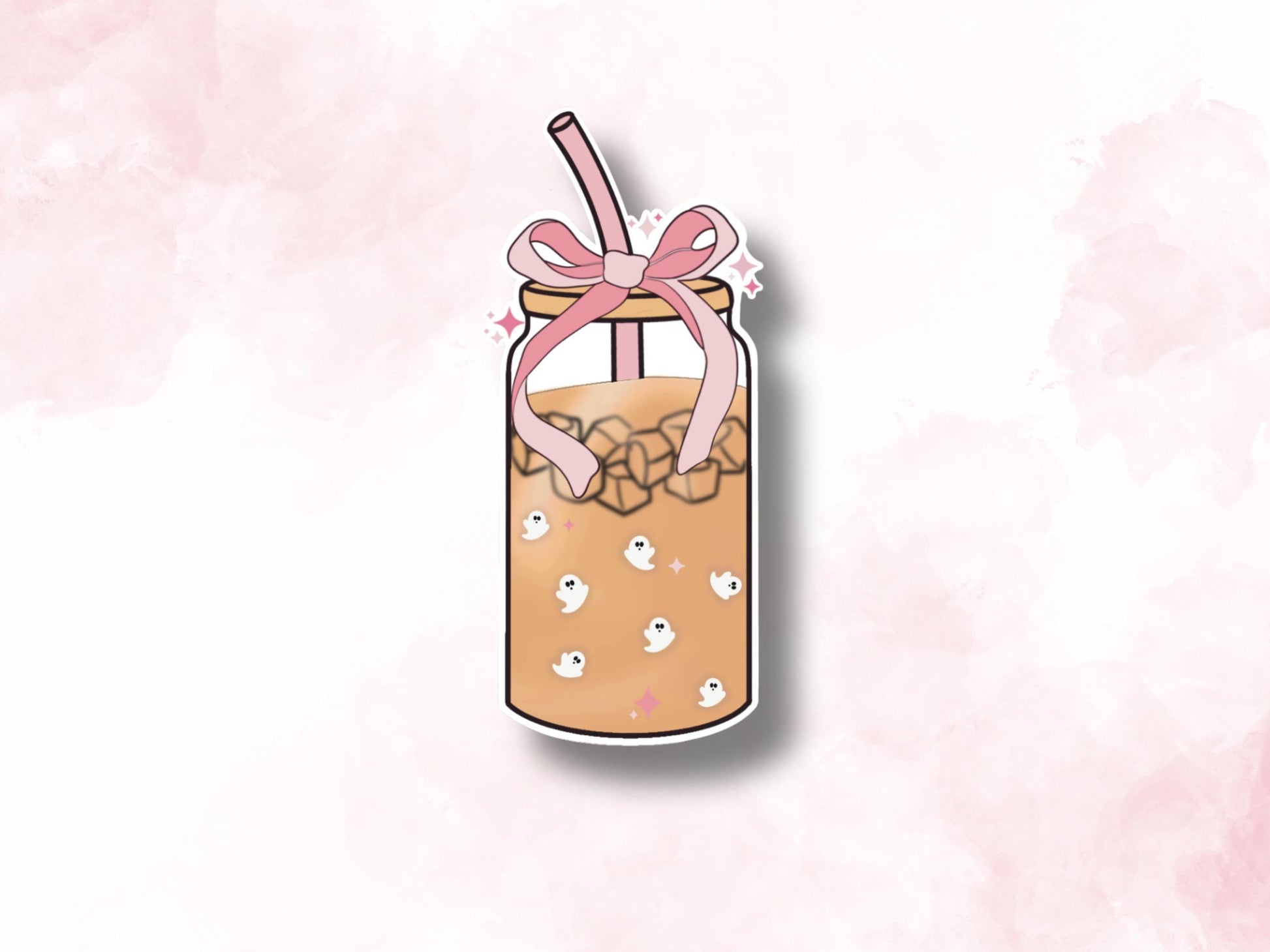Iced Coffee Ghosts Sticker -Laptop Sticker, Waterbottle sticker, Vinyl Stickers, Cute Kindle Stickers, Coquette Stickers, Girly Girl Sticker