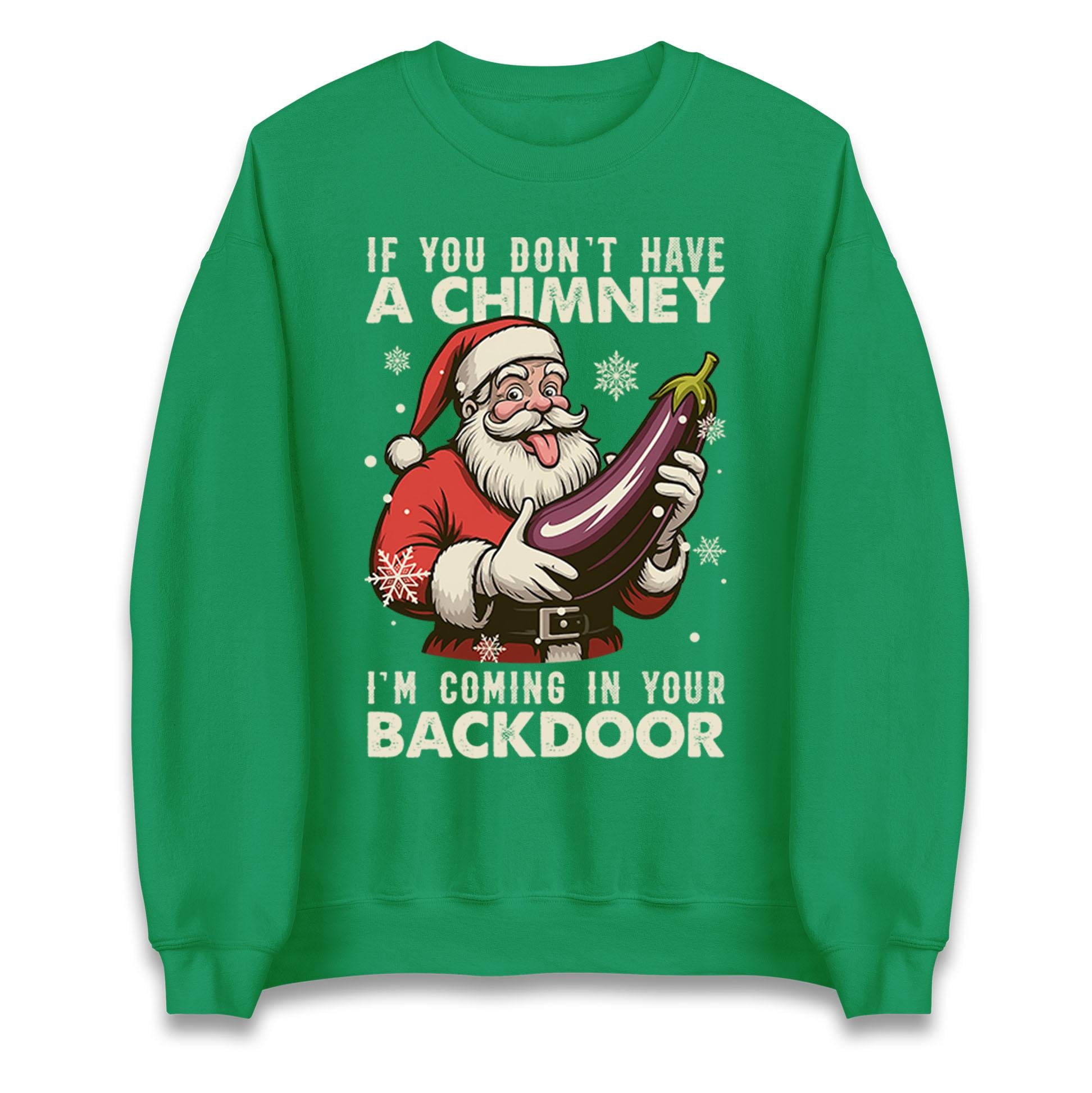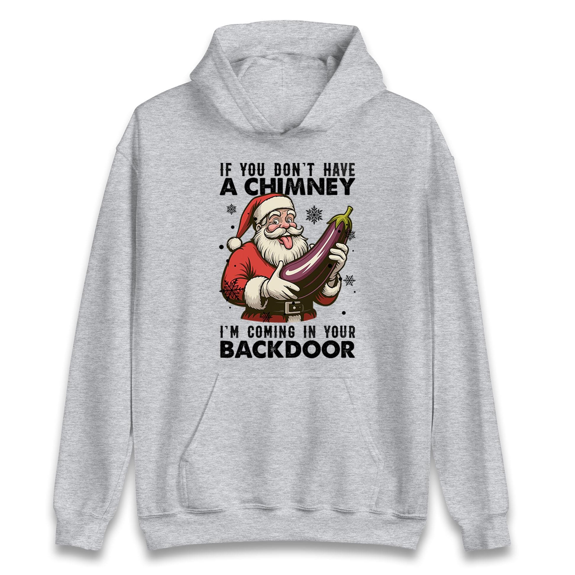If You Dont have A Chimney Im coming In Your backdoor Funny Santa Christmas Jumper, Xmas Rude , Adults Offensive Xmas Hoodie