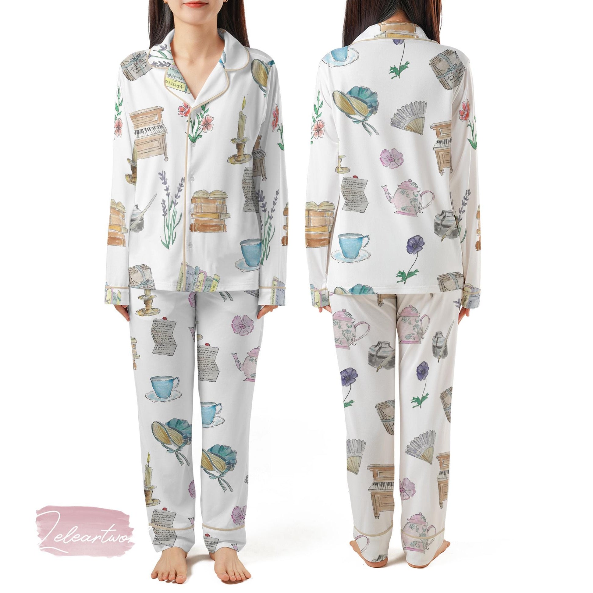 Jane Austen Collection Set – Vintage Book Lover Pajama Shorts Set | Literary Tea Floral Sleepwear | Romantic Regency Nightwear Gift