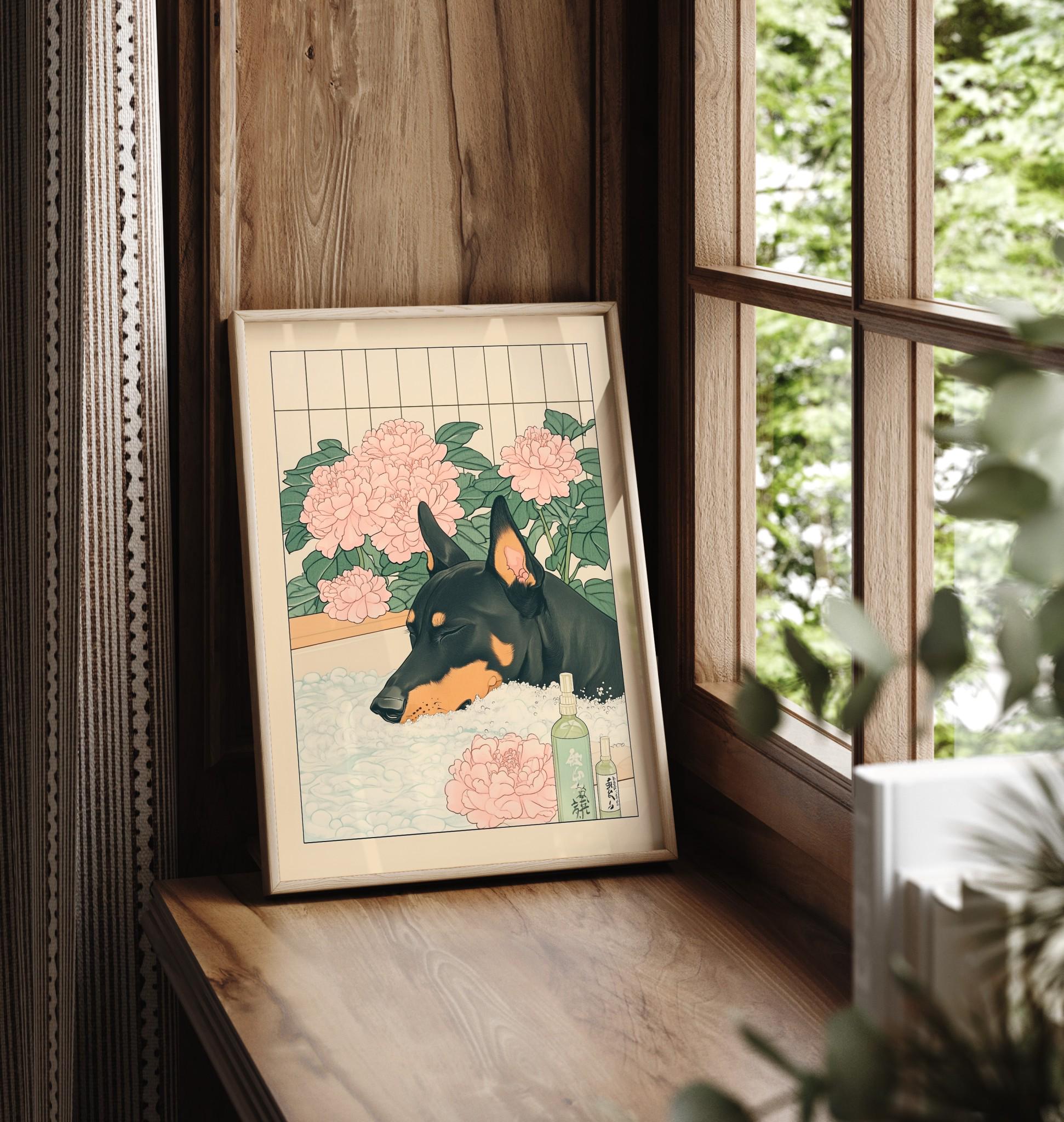 Japanese Doberman Bathroom Print: Ukiyo-e Style Dog Art