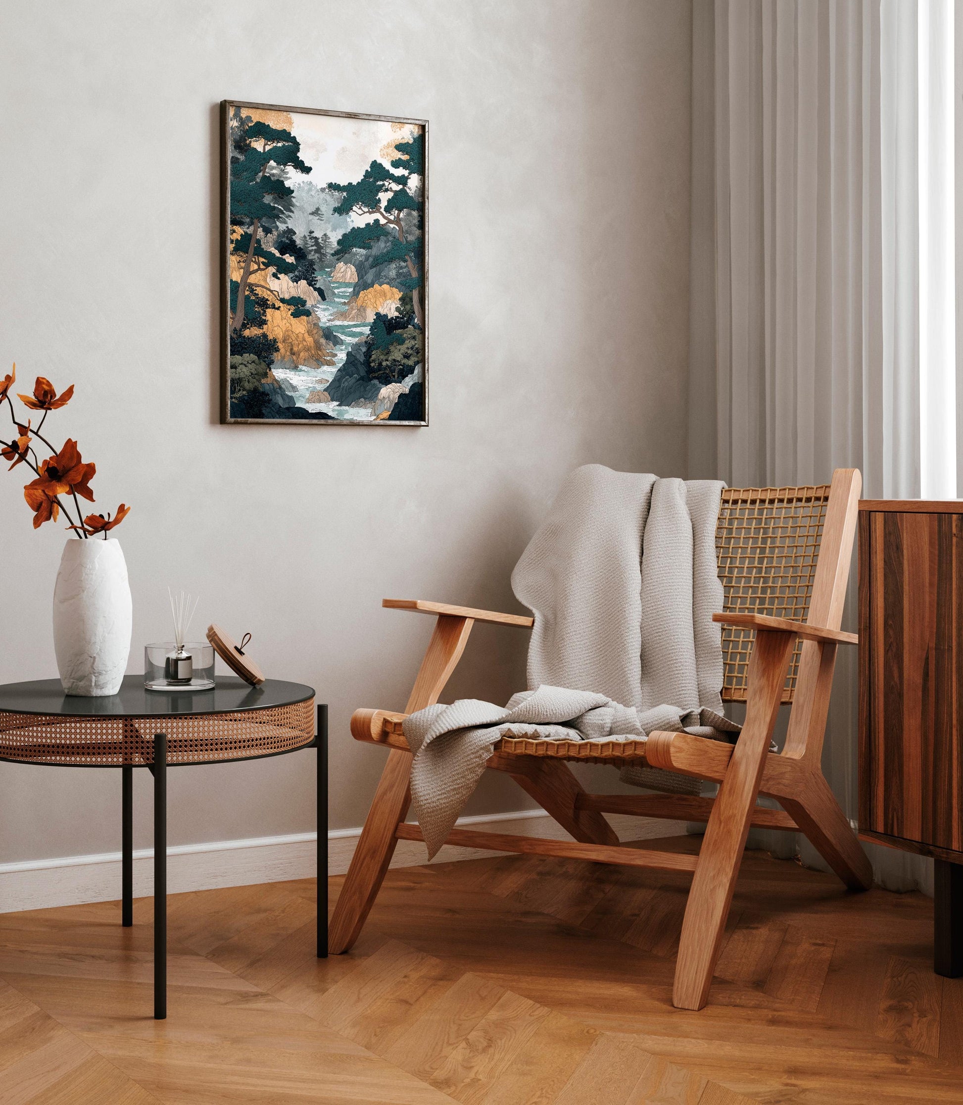Japanese Forest River Print: Ukiyo-e Style Landscape Art