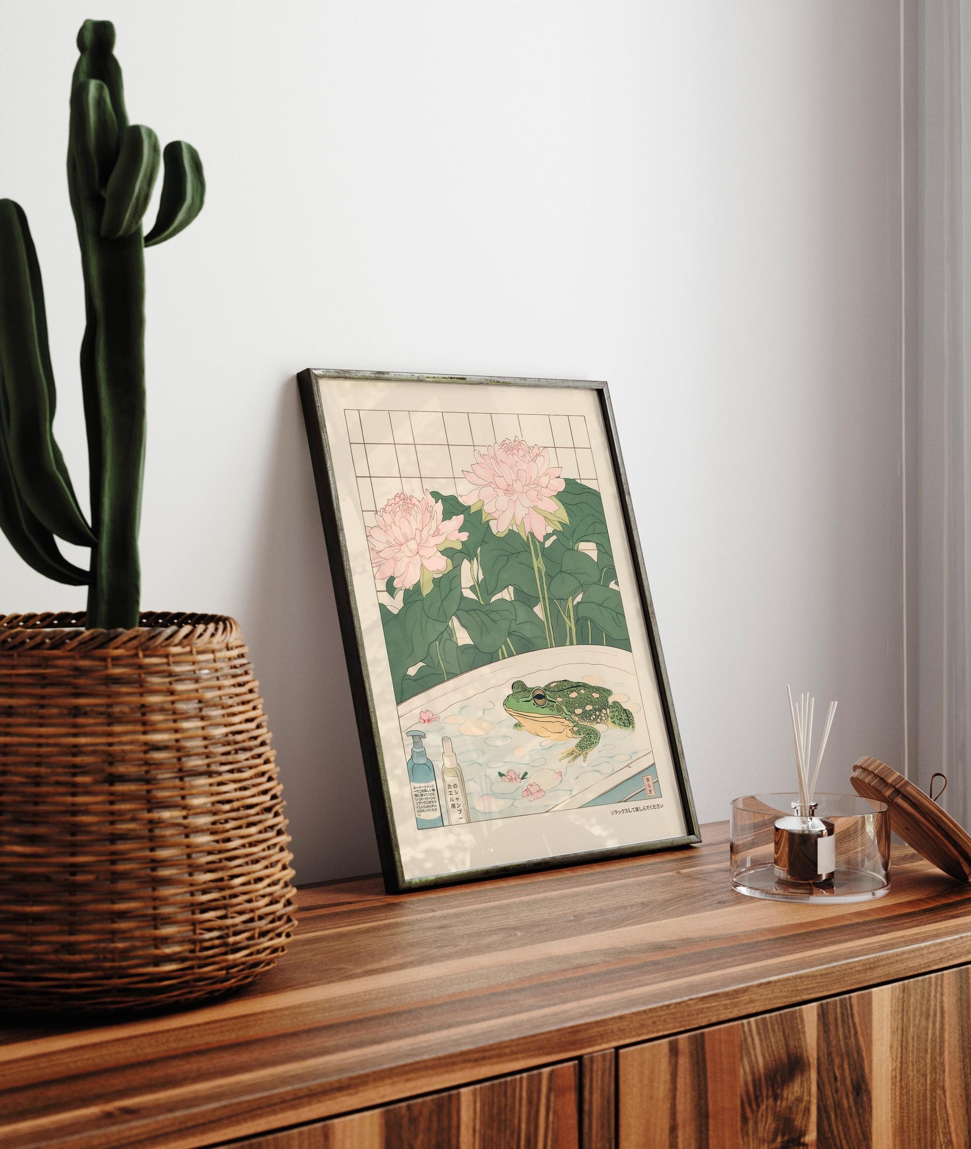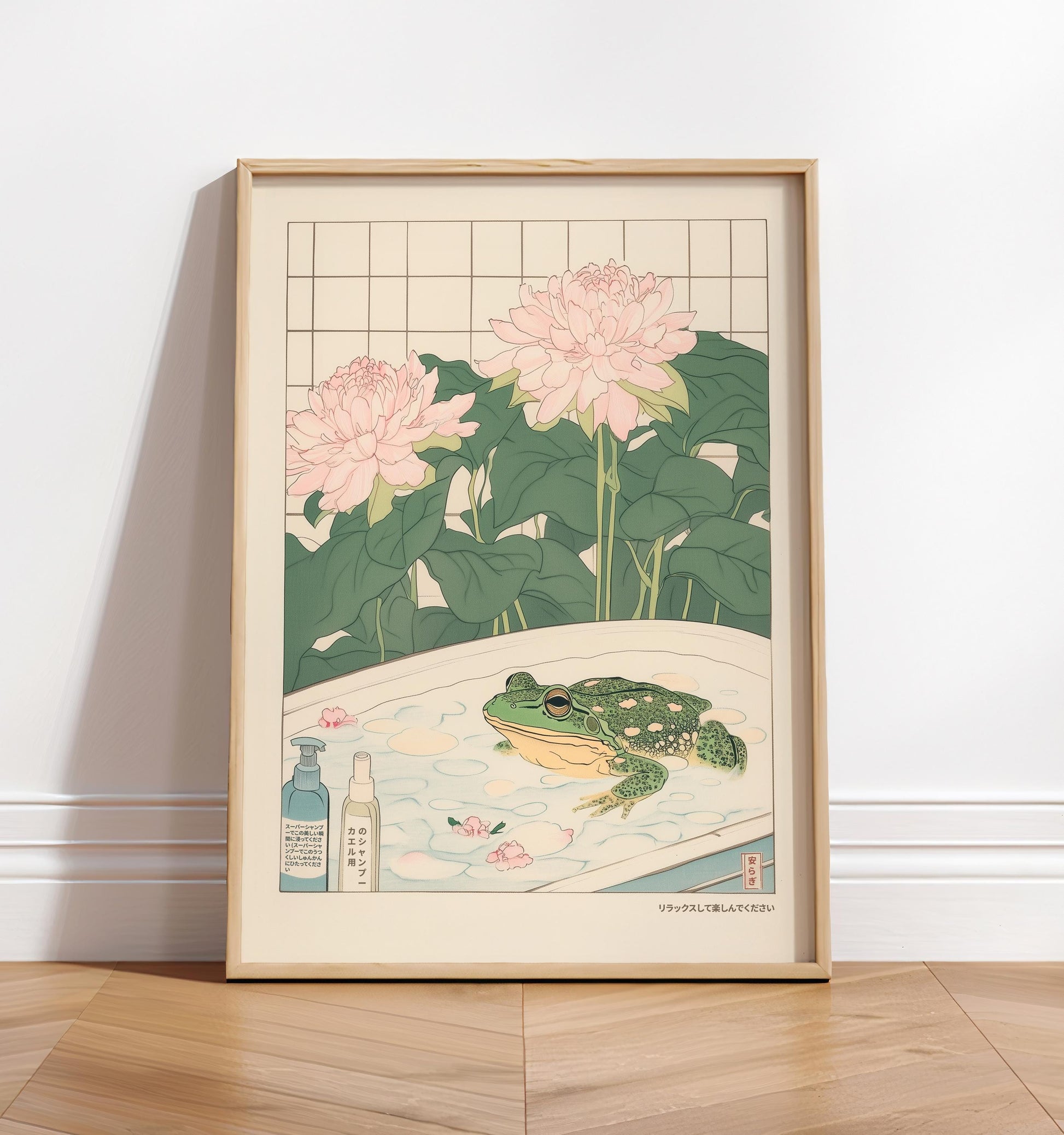 Japanese Frog Print: Ukiyo-e Style Bathroom Wall Art