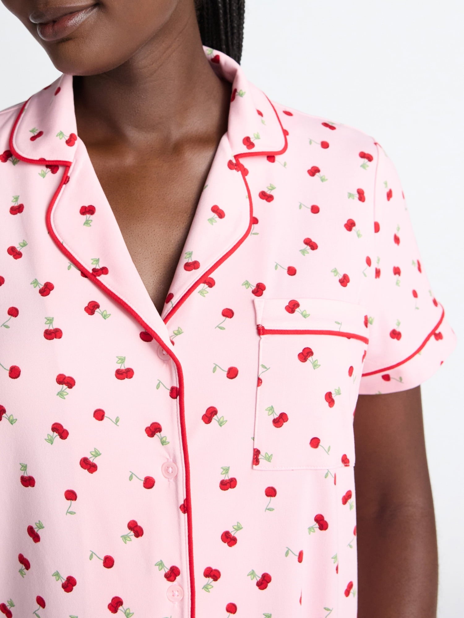 Joyspun Women’s Dreamy Soft Collection Notch Collar Knit Top and Boxer Shorts Pajama Set, Sizes XS-3X