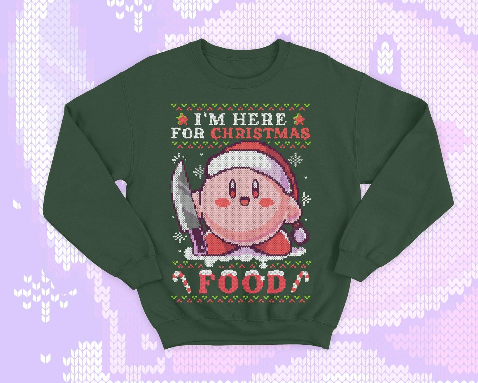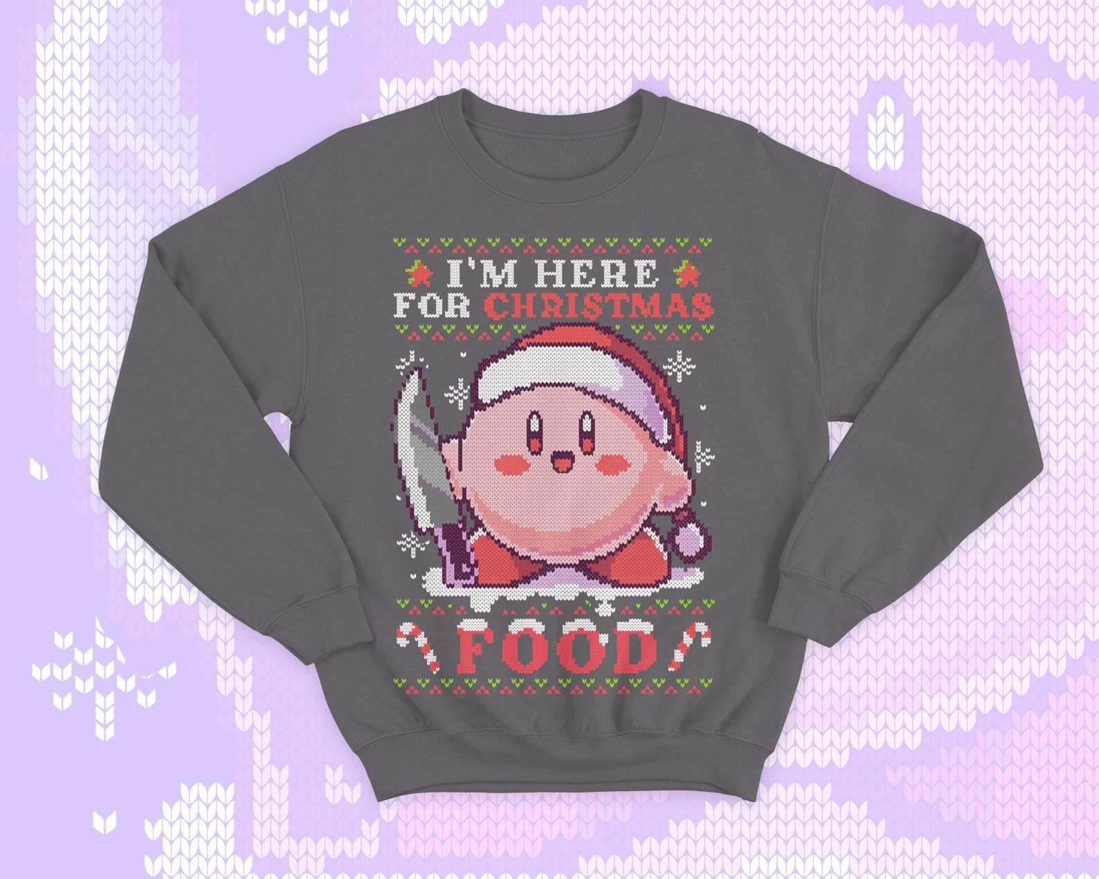 Kirby knife Ugly Christmas - Kawaii sweatshirt gift - Cute pink hungry Kirby - Food - Kawaii gamer geek present